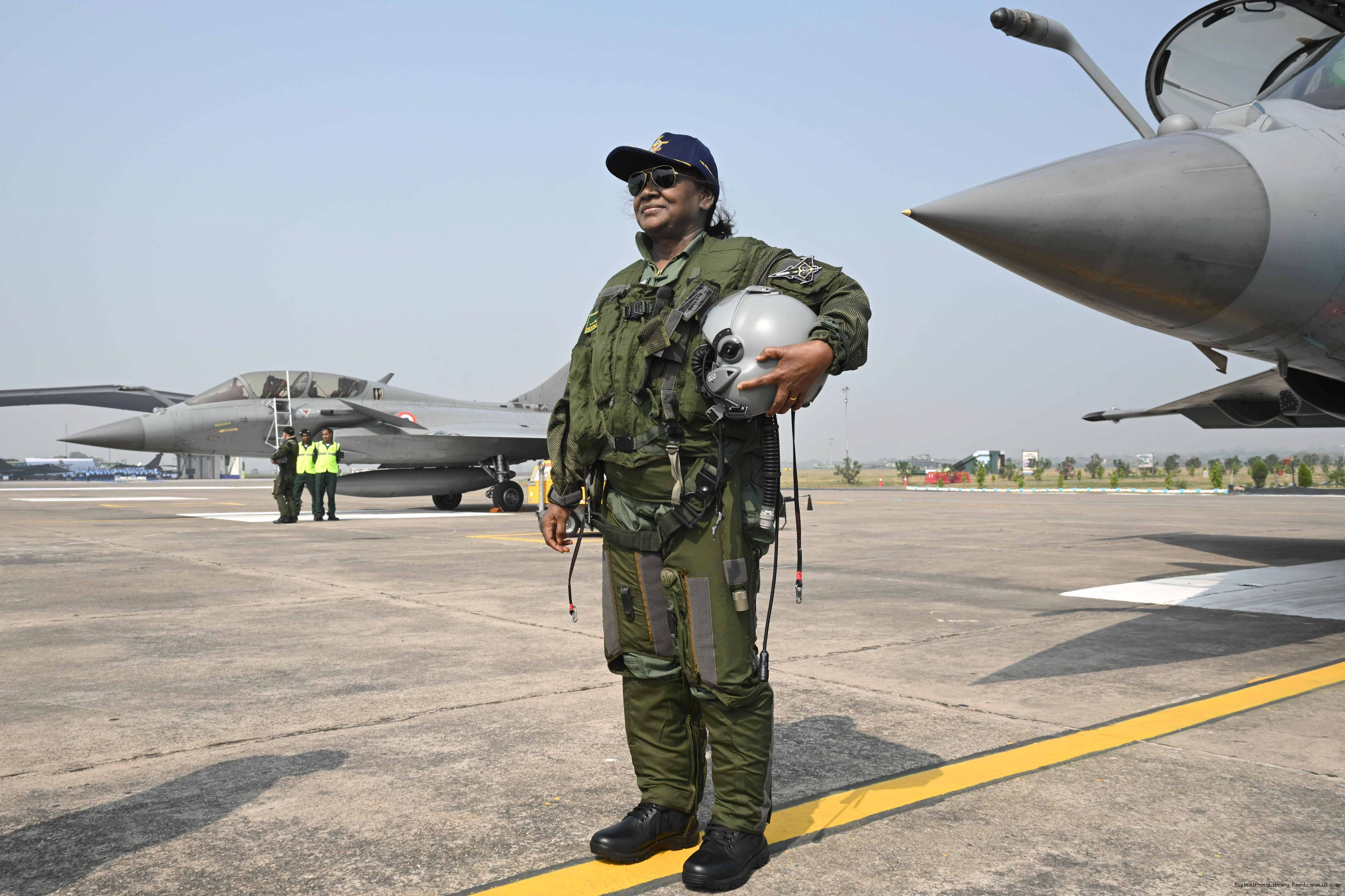 The President of India, Smt Droupadi Murmu took a sortie in a Rafale aircraft at Air Force Station, Ambala (Haryana) on October 29, 2025.