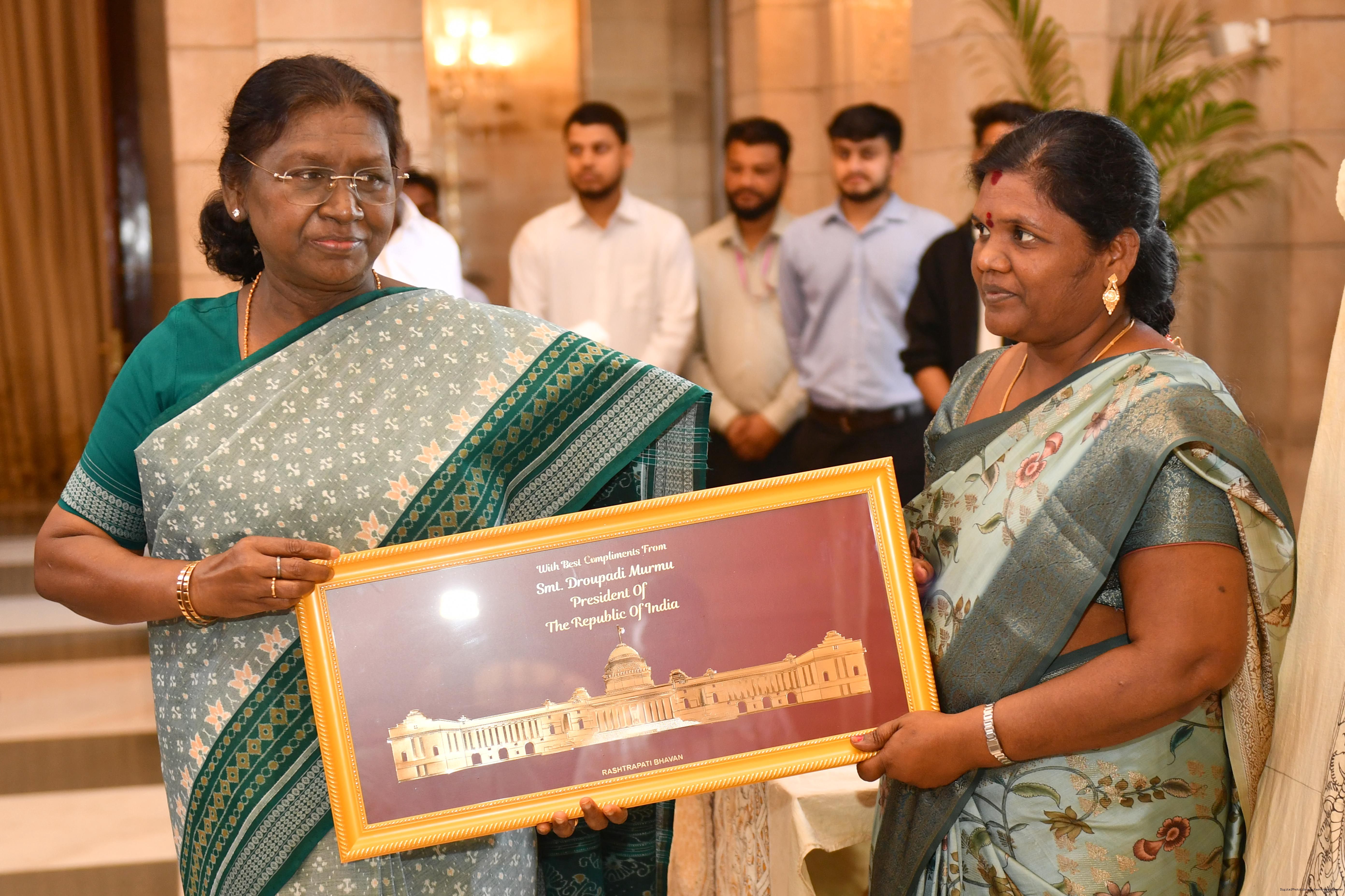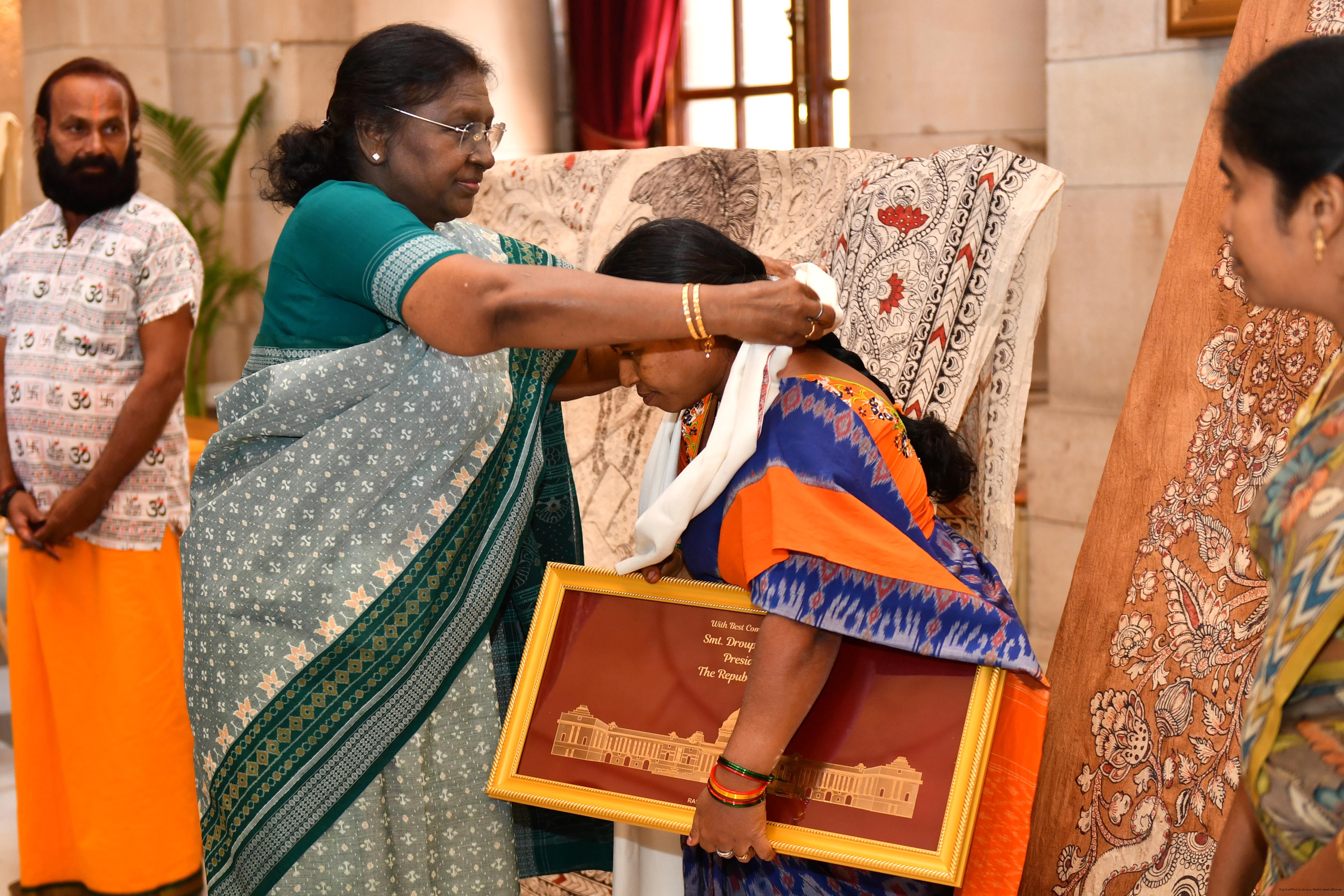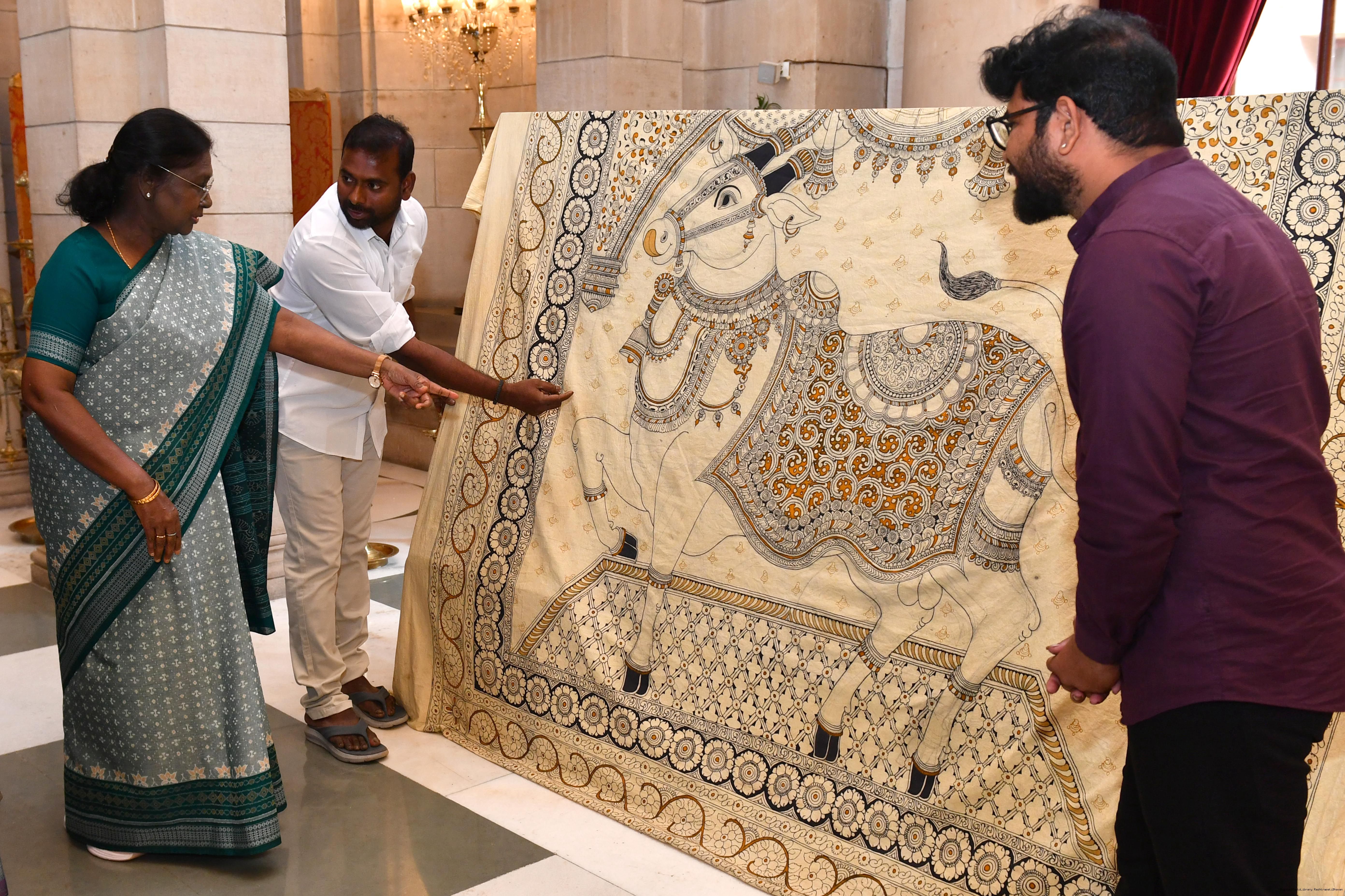 The President of India, Smt Droupadi Murmu met a group of artists of Kalamkari Art and witnessed their work at Rashtrapati Bhavan on February 24, 2026.