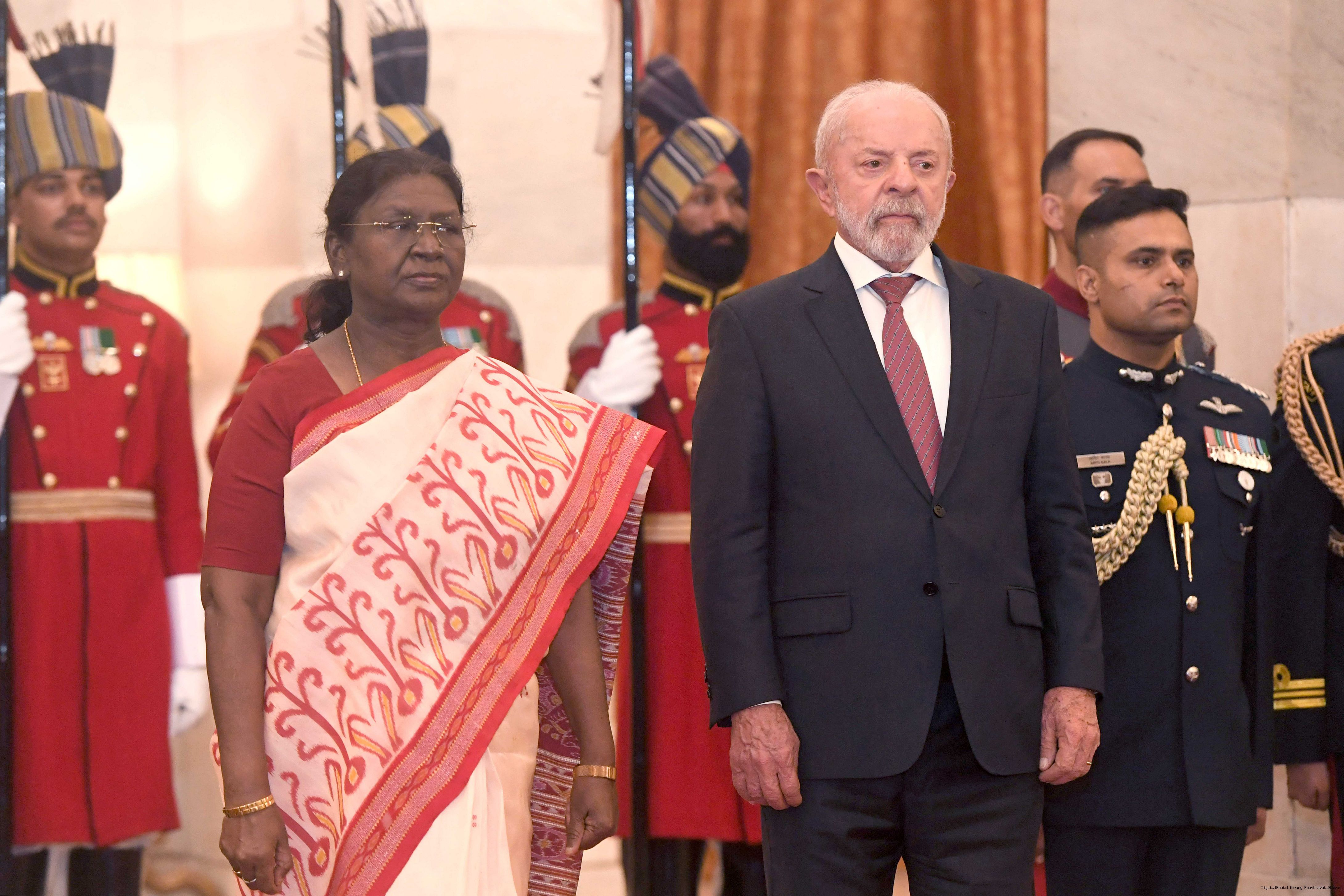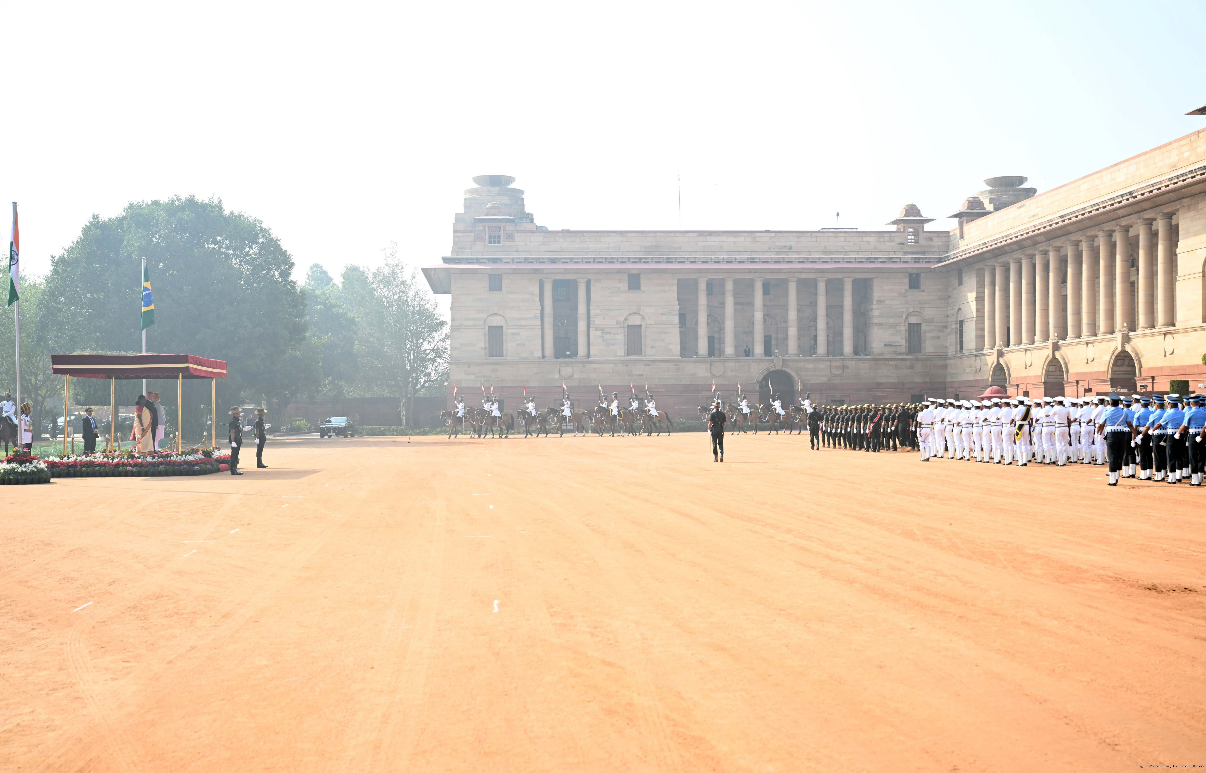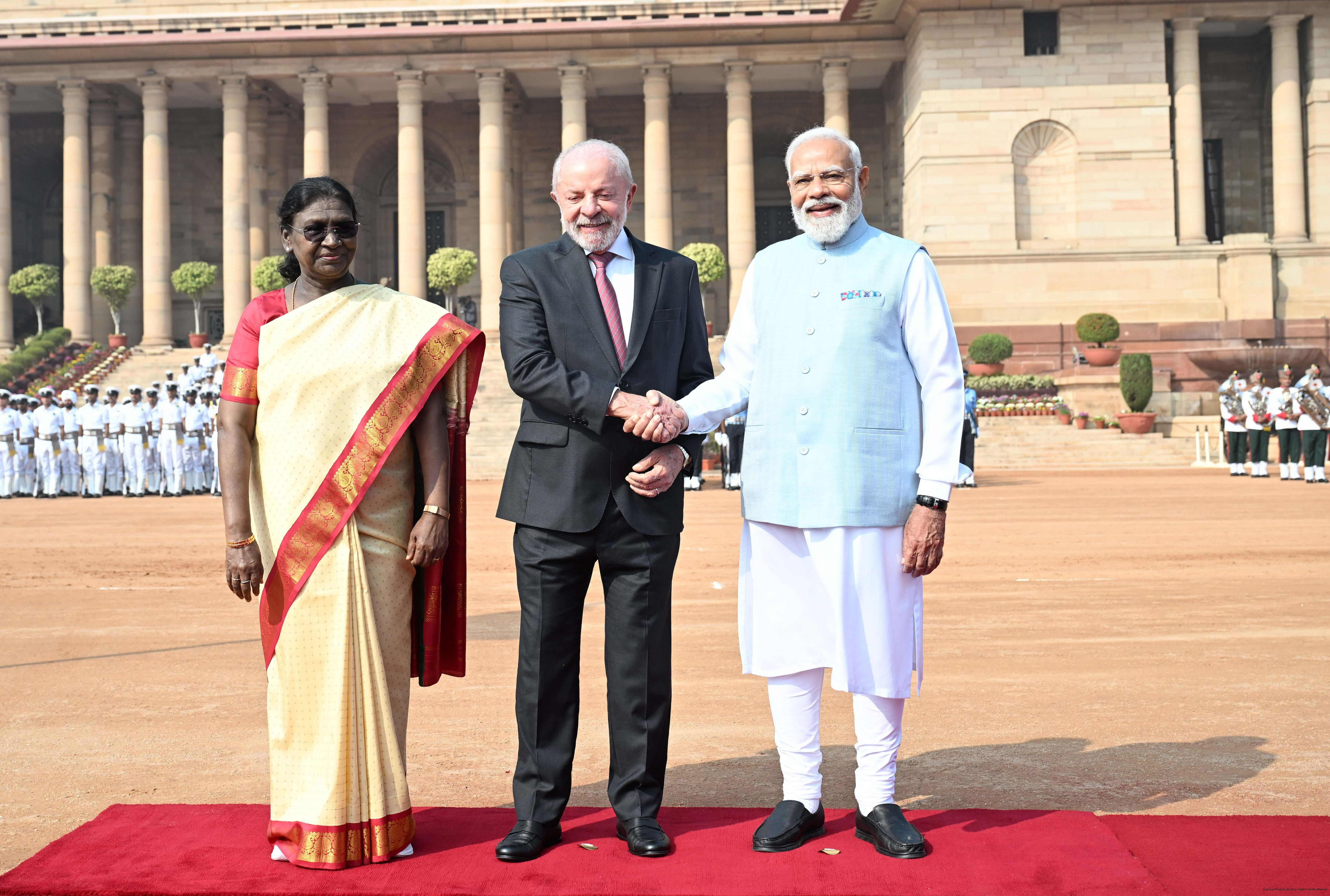The President of India, Smt Droupadi Murmu accorded a ceremonial welcome to H.E. Mr. Luiz Inácio Lula da Silva, President of the Federative Republic of Brazil, at Rashtrapati Bhavan on February 21, 2026.