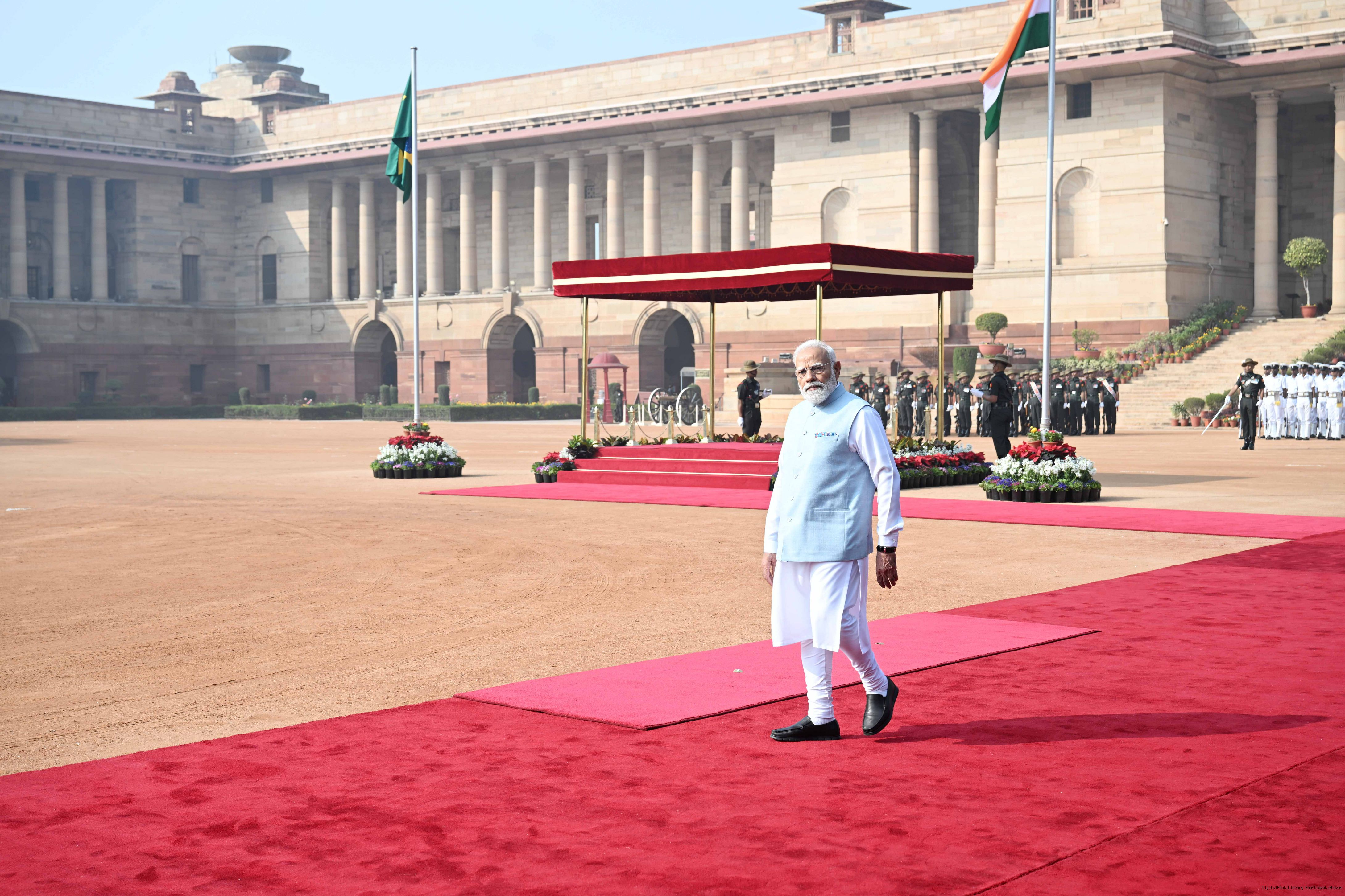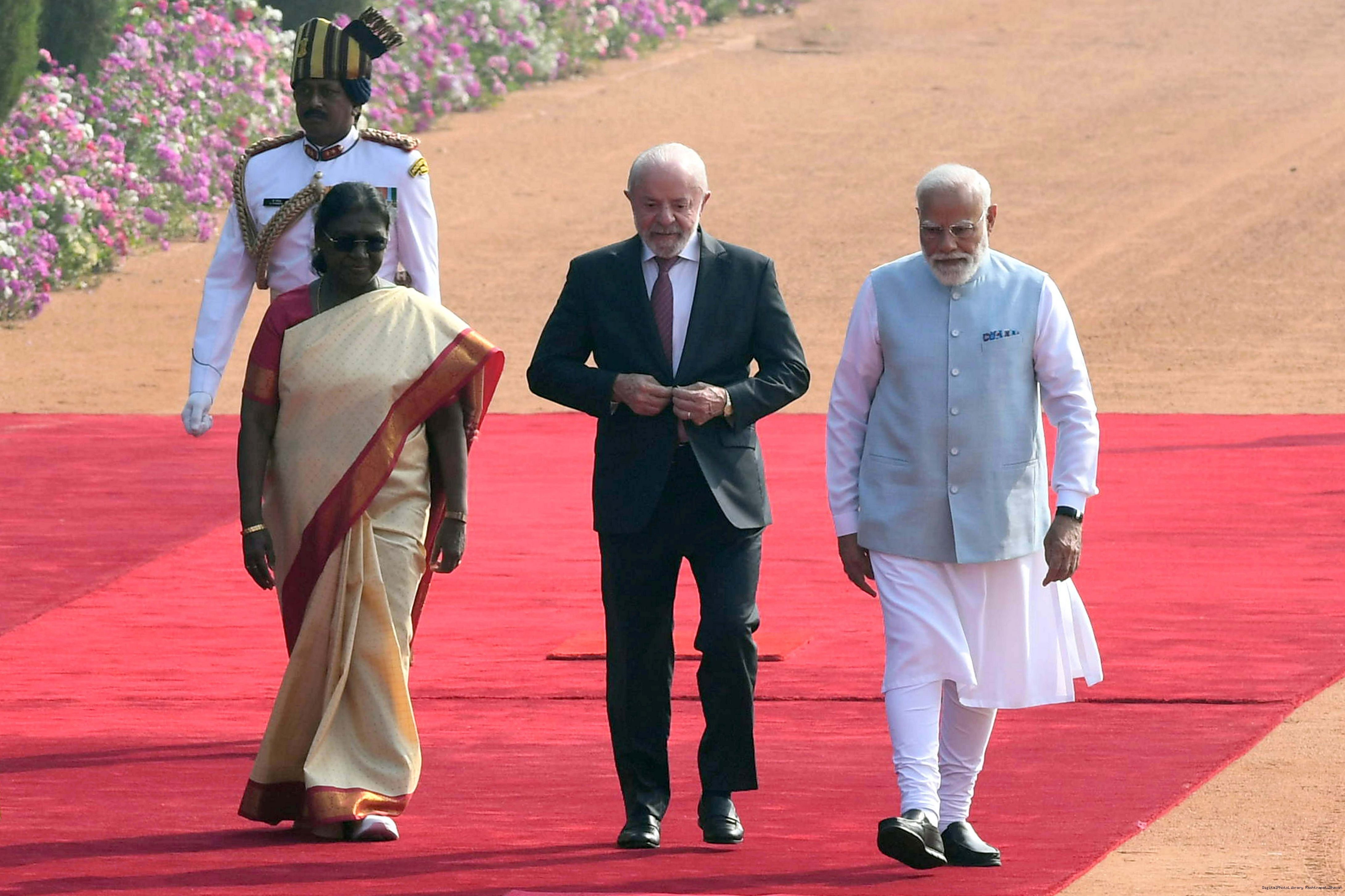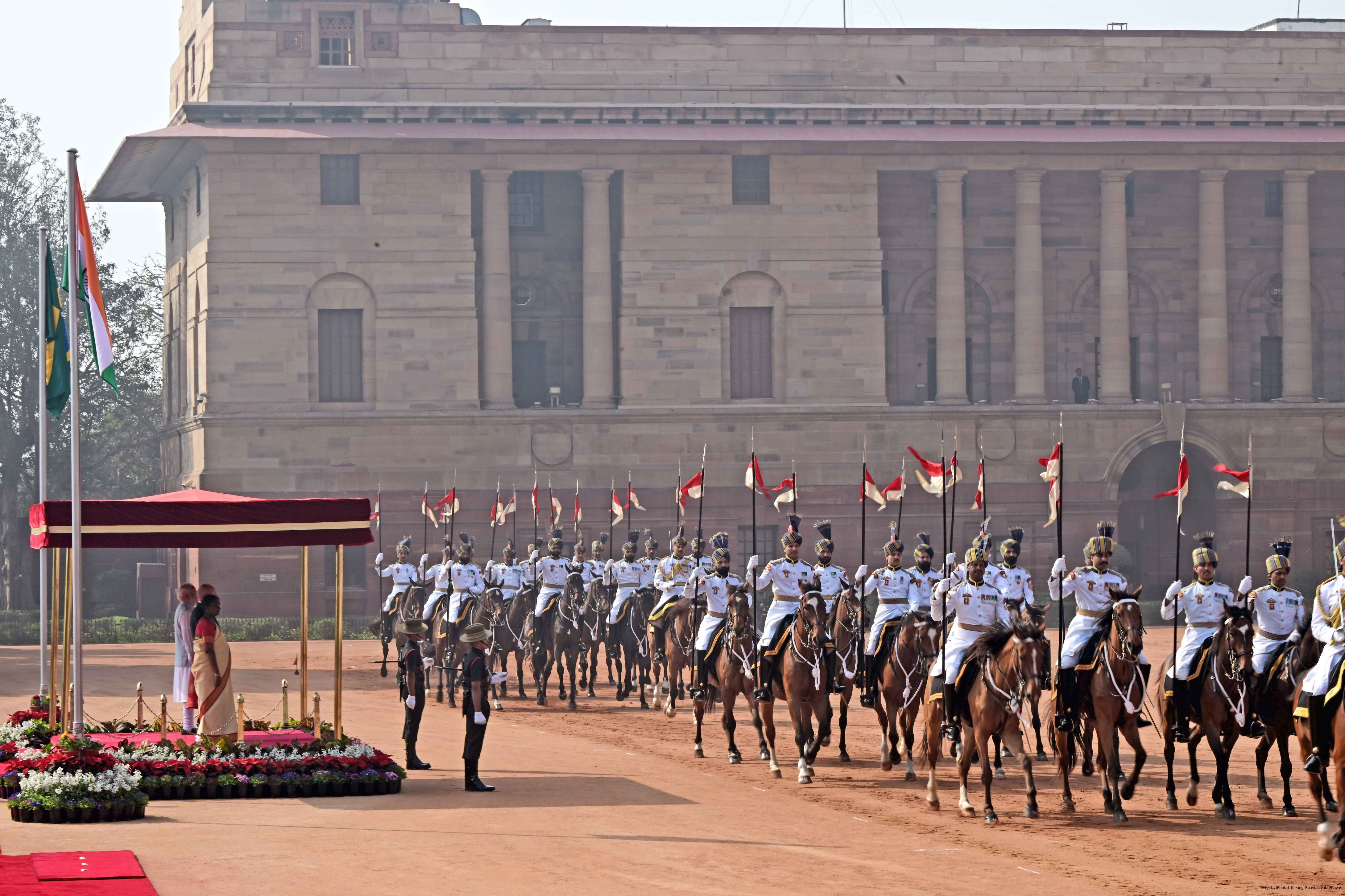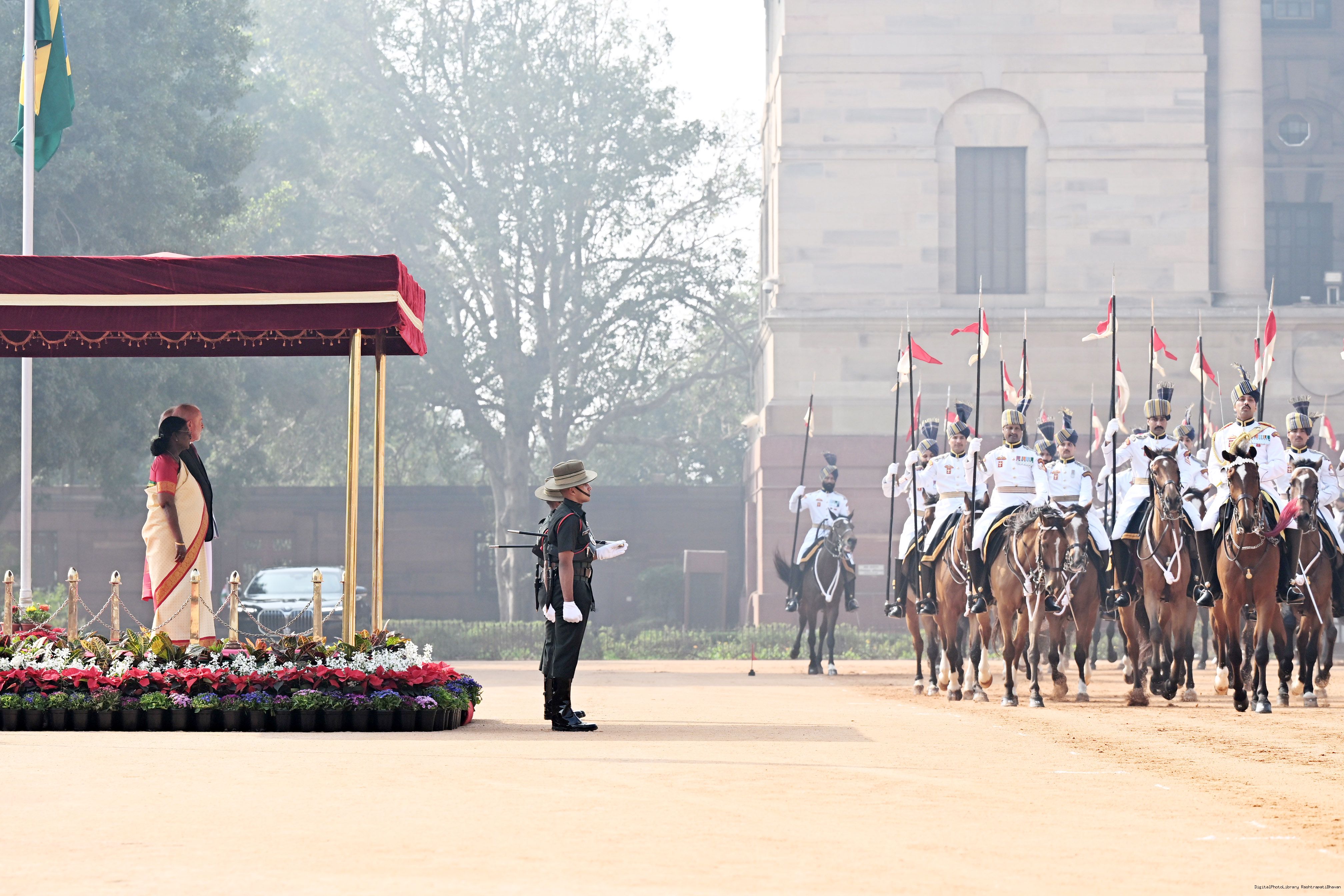 The President of India, Smt Droupadi Murmu accorded a ceremonial welcome to H.E. Mr. Luiz Inácio Lula da Silva, President of the Federative Republic of Brazil, at Rashtrapati Bhavan on February 21, 2026.