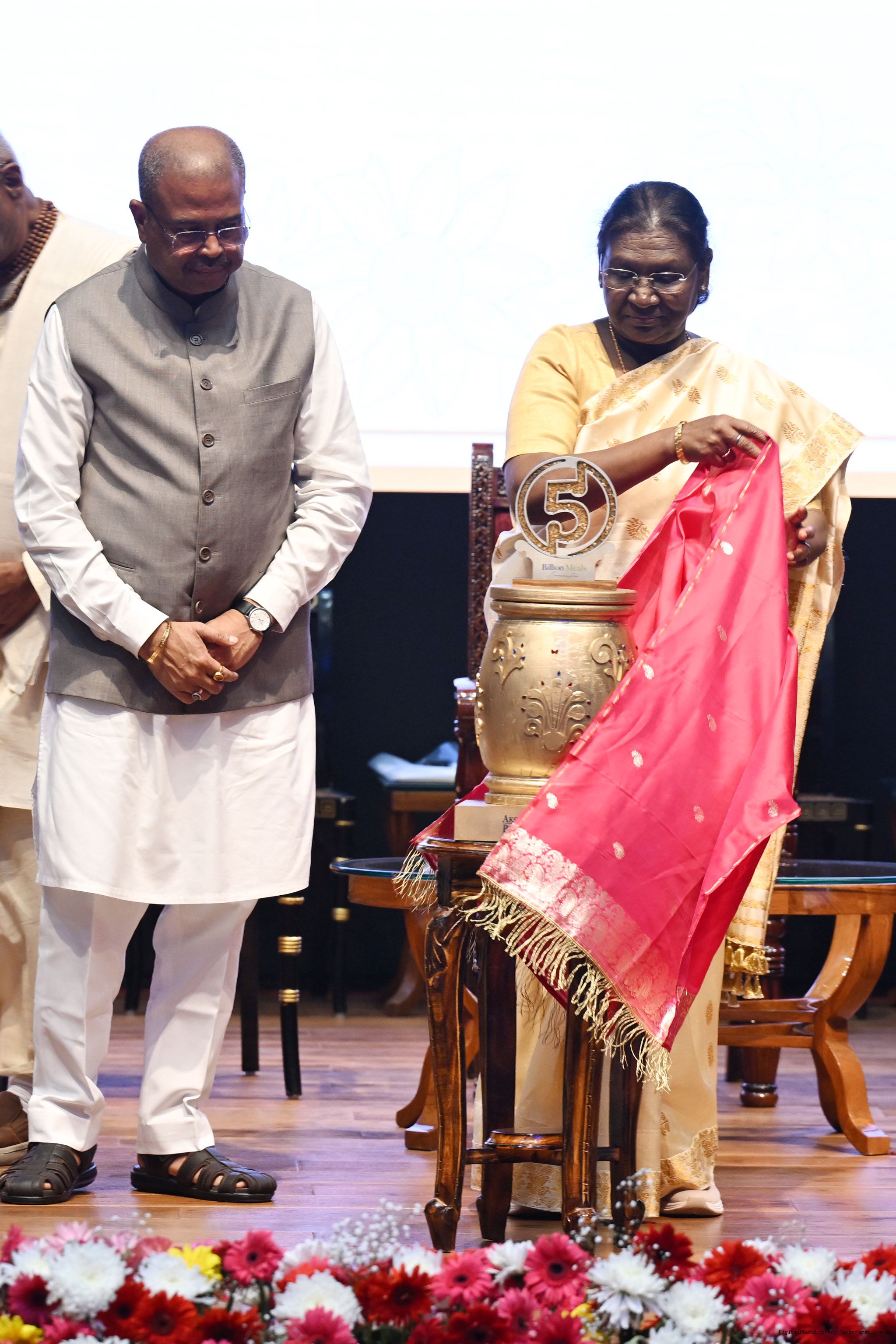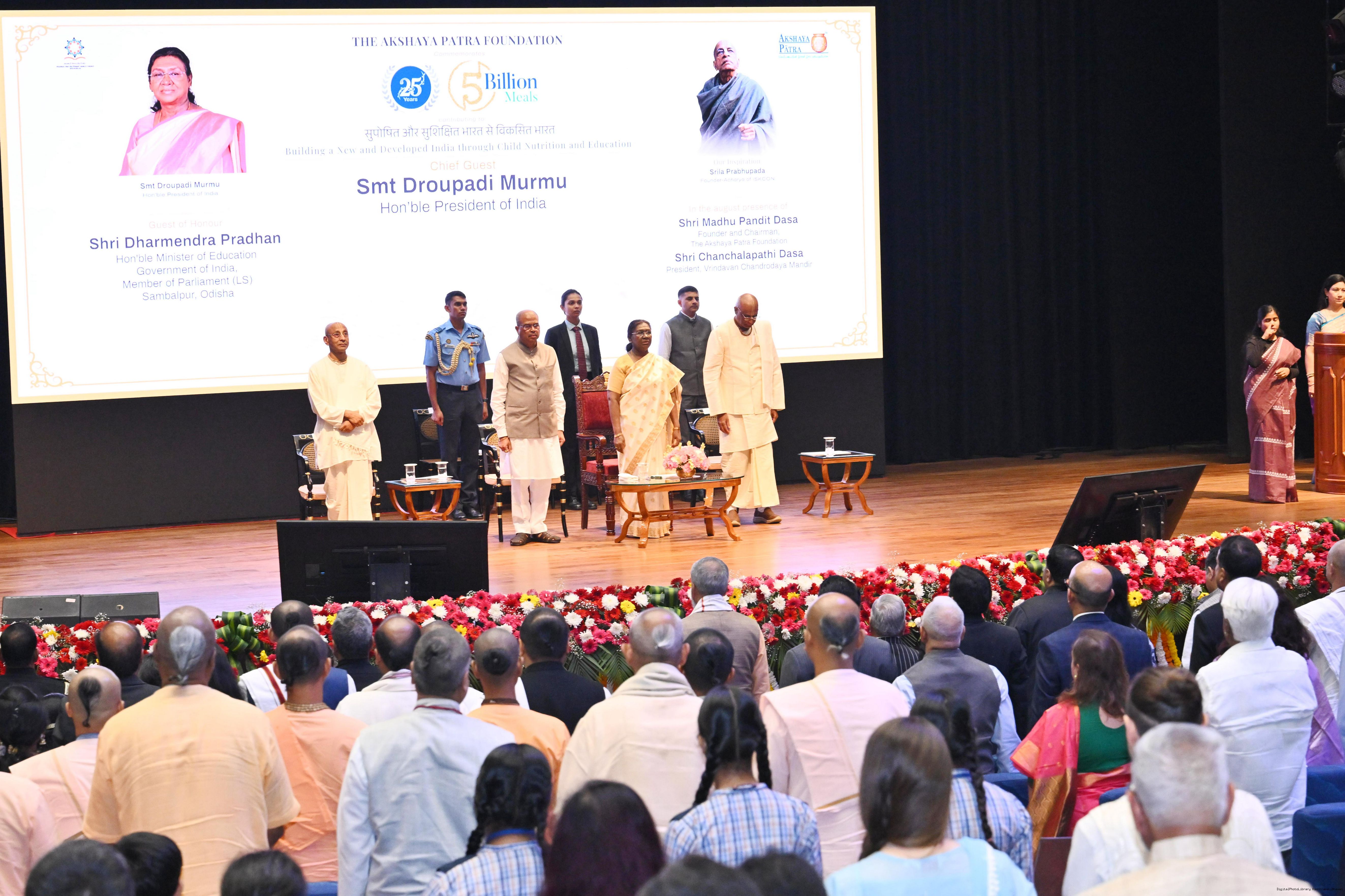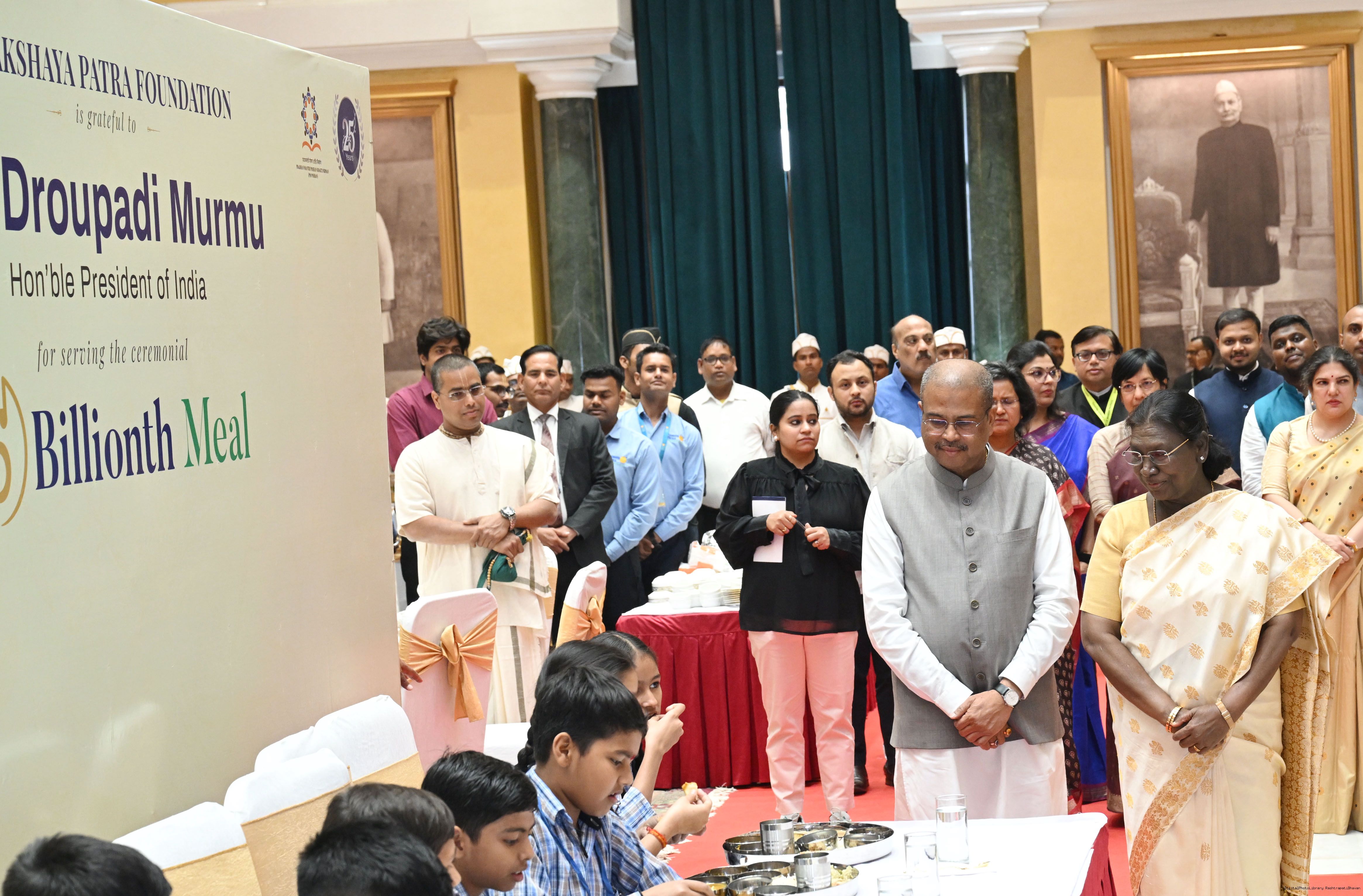 The President of India Smt Droupadi Murmu graced an event to commemorate the five billion meals of Akshaya Patra Foundation at Rashtrapati Bhavan Cultural Centre on March 17, 2026.