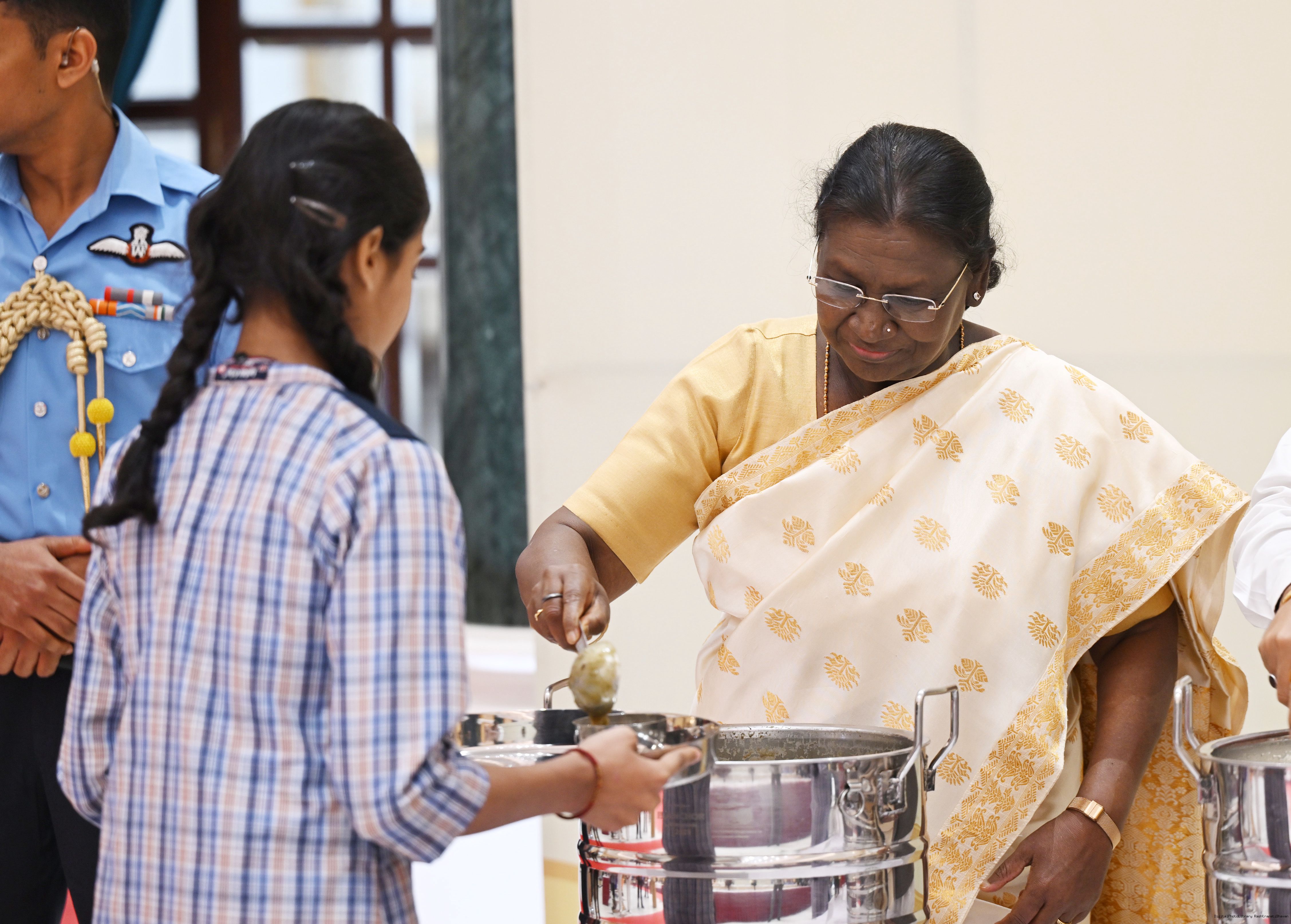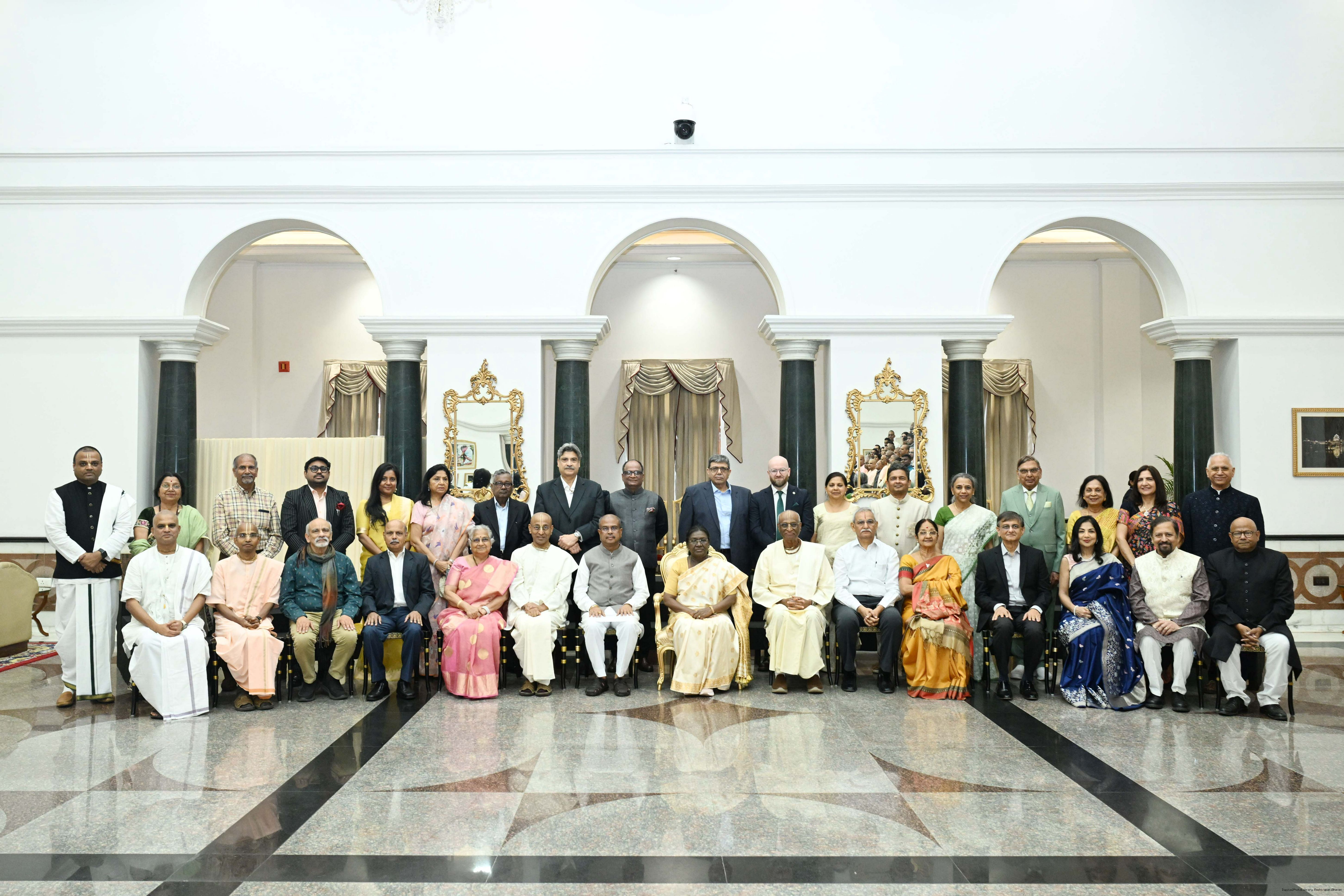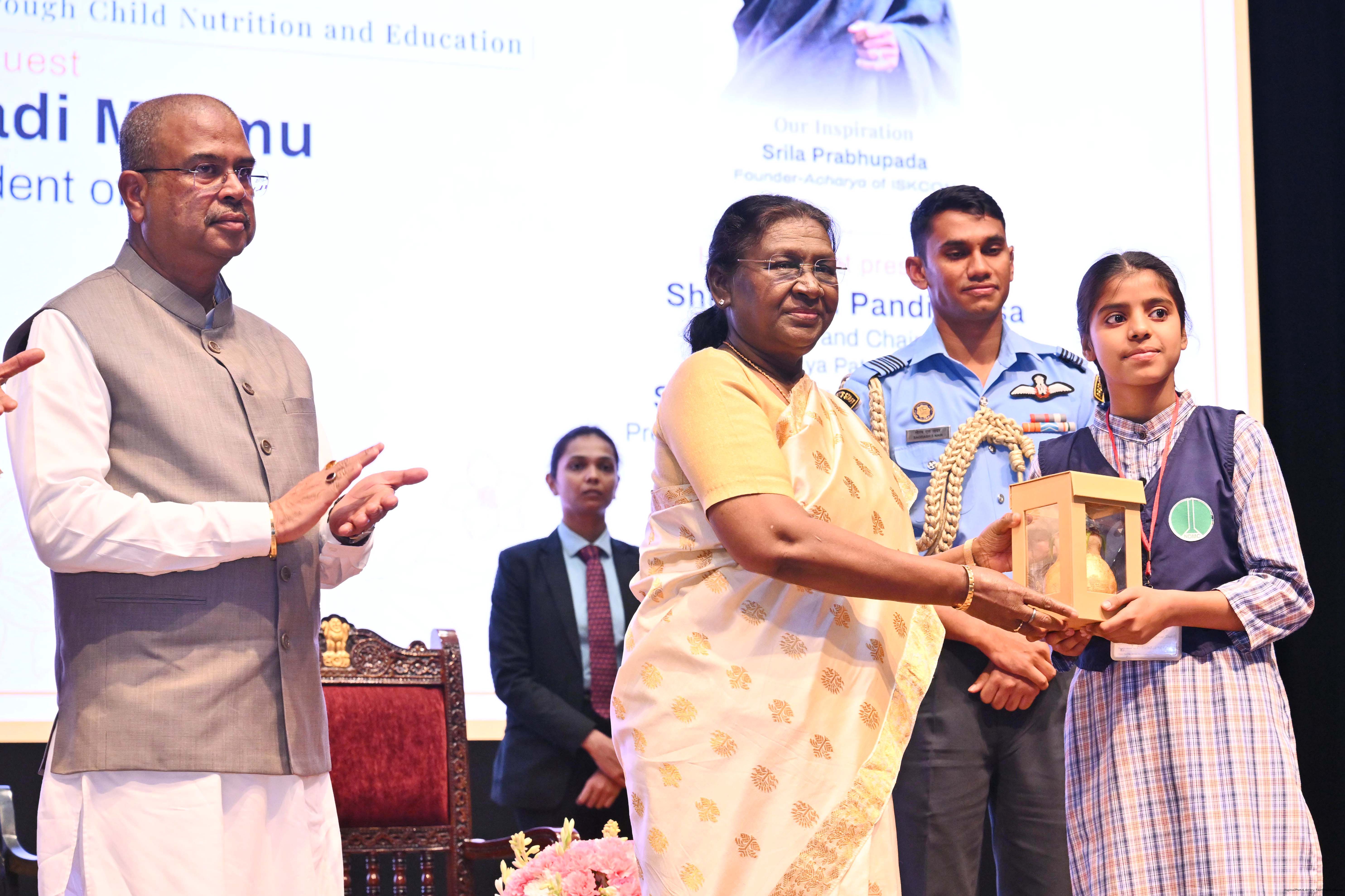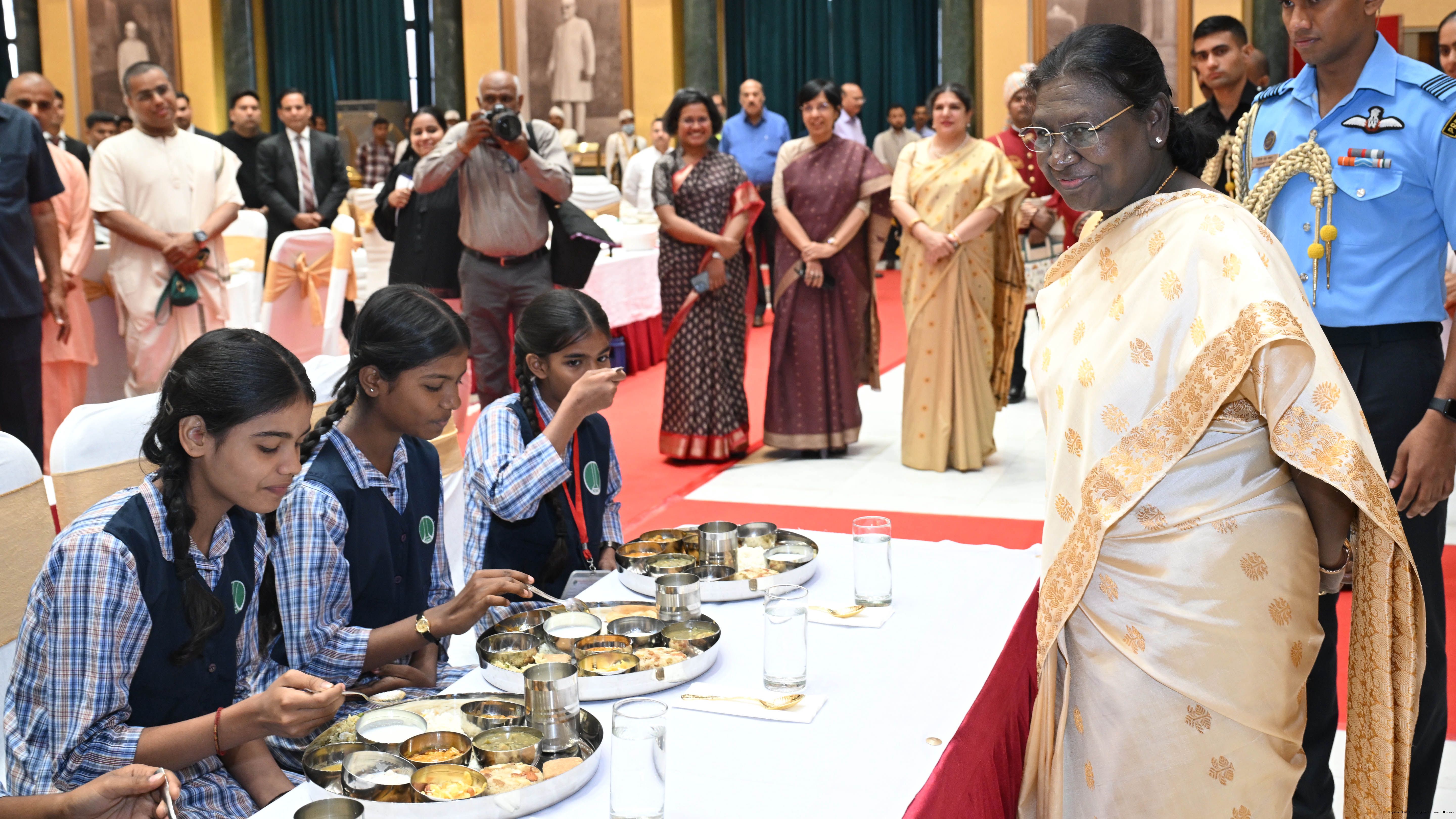 The President of India Smt Droupadi Murmu graced an event to commemorate the five billion meals of Akshaya Patra Foundation at Rashtrapati Bhavan Cultural Centre on March 17, 2026.