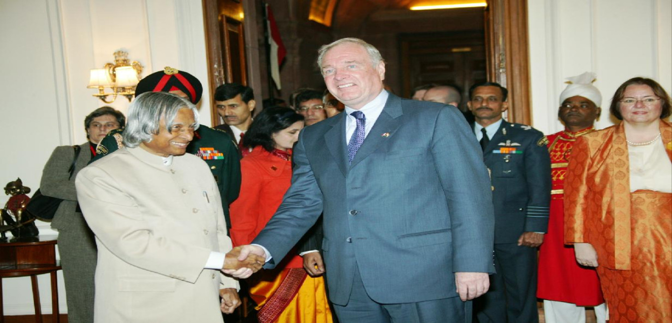 The Minister of Defence in Switzerland Federal Councillor Samuel Schmid calling on the President of India, Dr A P J Abdul Kalam at Rashtrapati Bhavan in New Delhi on Nov 29, 2004