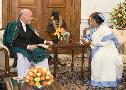 The HRH Prince of Wales, HE Mr Charles Philip Arthur George and his wife Mrs Camilla Rosemary calling on the President of India, Smt Pratibha Devisingh Patil at Rashtrapati Bhavan in New Delhi on Oct 02, 2010