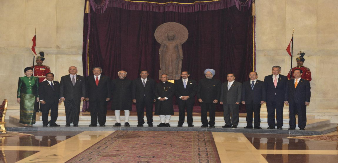 The President of India, Shri Pranab Mukherjee Posing for a Group Photograph with Delegation of ASEAN-India Special Commemorative Summit (Call on & Farewell) on Dec 20, 2012