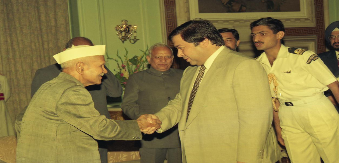 The President of India, Dr. Shankar Dayal Sharma meeting with Prof. Ilya Prigogine, Nobel Laureate from Belgium and his wife, at Rashtrapati Bhavan in New Delhi on December 22, 1995.