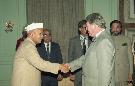 The Chief of Staff of UAE Defence Forces, H.E. Sheikh Mohammed Bin Zayed Al Nahyan calling on the President of India, Dr. Shankar Dayal Sharma, at Rashtrapati Bhavan in New Delhi on March 08, 1996.