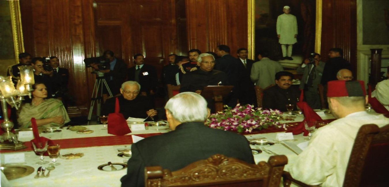 The President of India, Shri K R Narayanan at the Lunch Hosted in Honour of the Distinguished Guests Prime Minister of the Republic of Mauritius, Rt Hon'ble Sir Anerood Jugnauth and his wife Lady Sarojini Devi Jugnauth at the Banquet Hall of Rashtrapati Bhavan in New Delhi on Jan 16, 2001