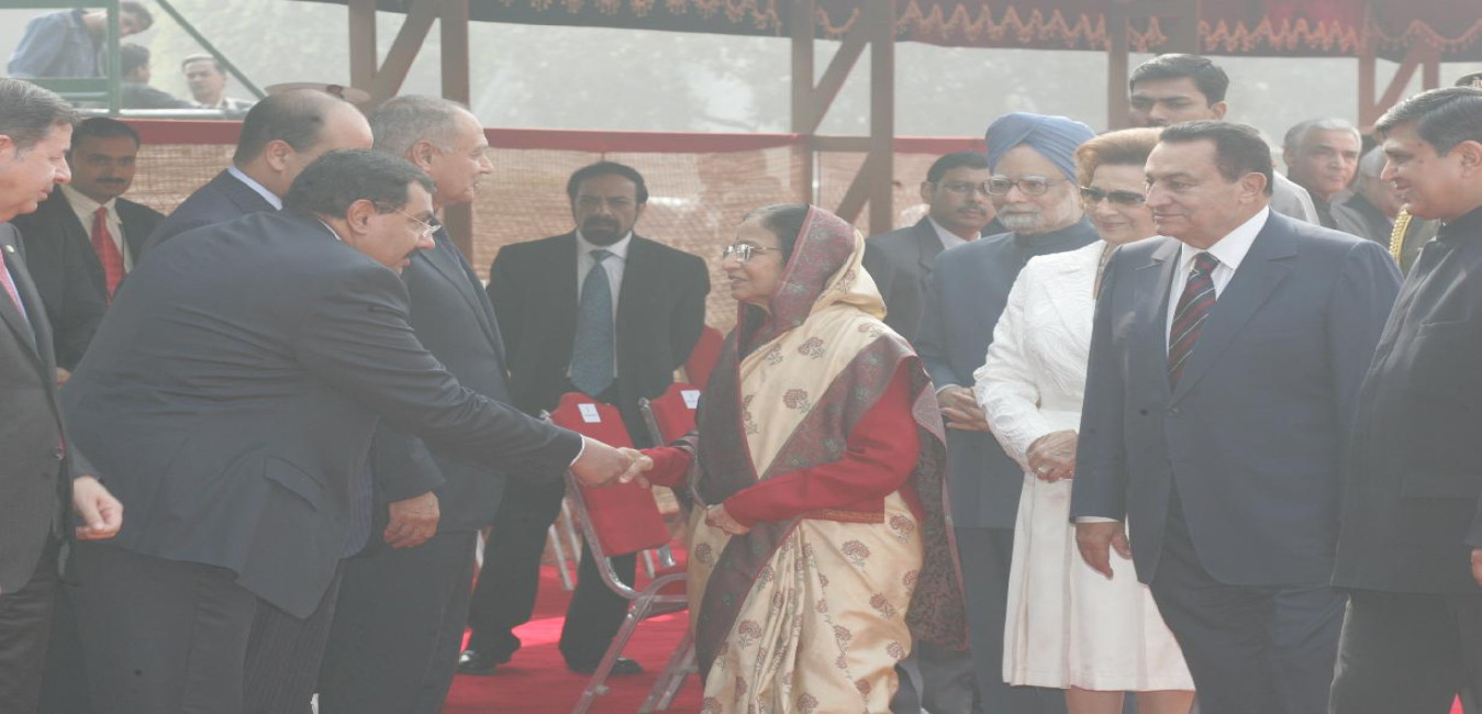 The President of India, Smt Pratibha Devisingh Patil at the Banquet Hosted in Honour of the President of the Arab Republic of Egypt, HE Mr Mohamed Hosny Mubarak at Rashtrapati Bhavan in New Delhi on Nov 18, 2008