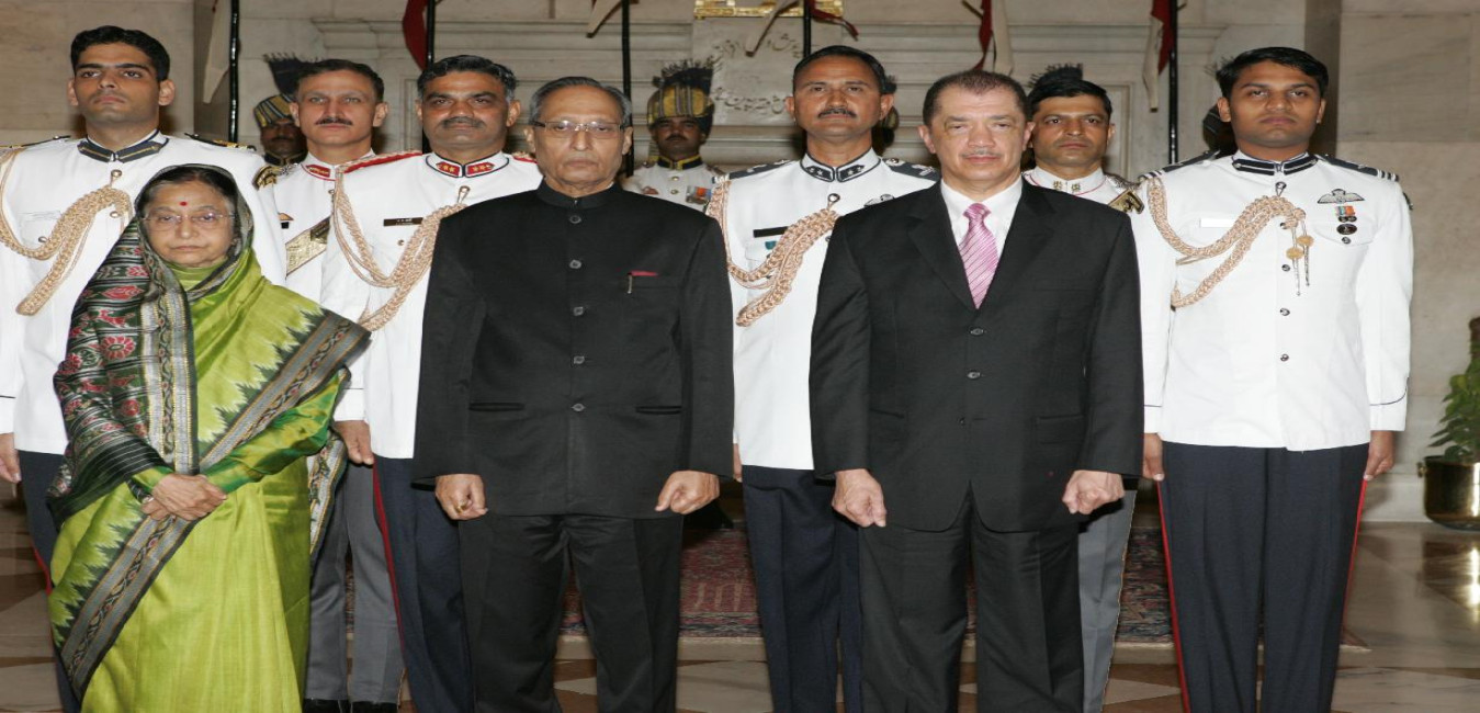 The President of Seychelles, HE Mr James Alix Michel calling on the President of India, Smt Pratibha Devisingh Patil at Rashrapati Bhavan in New Delhi on June 02, 2010