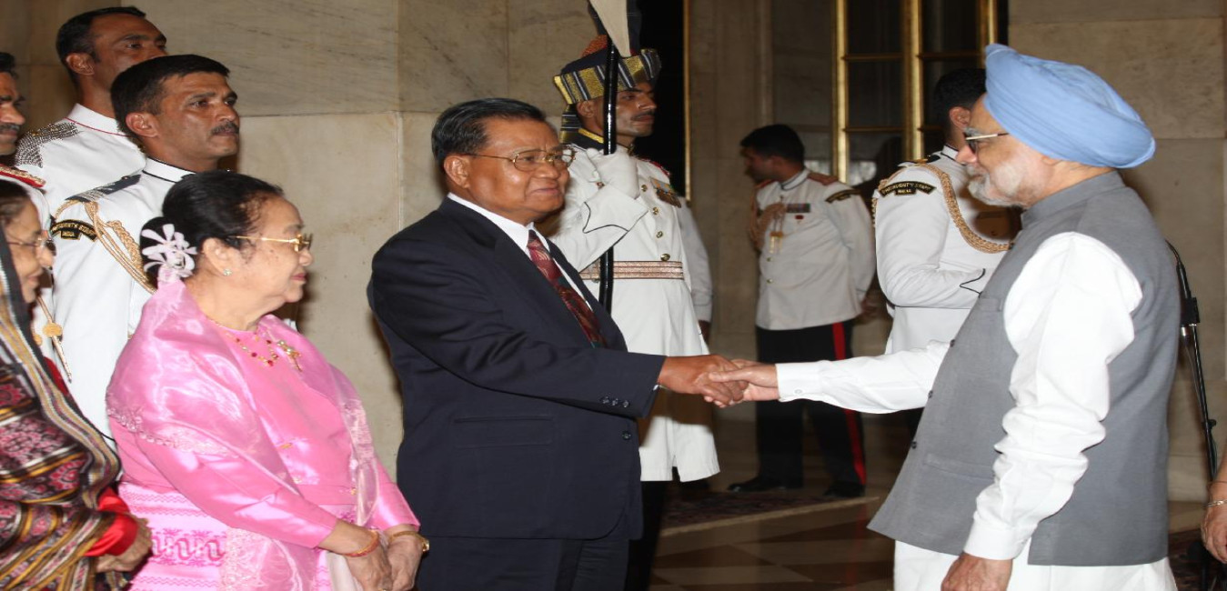 The Chairman of the State Peace and Development Council of the Union of Myanmar Senior General, HE Mr Than Shwe calling on the President of India, Smt Pratibha Devisingh Patil at Rashtrapati Bhavan in New Delhi on June 27, 2010