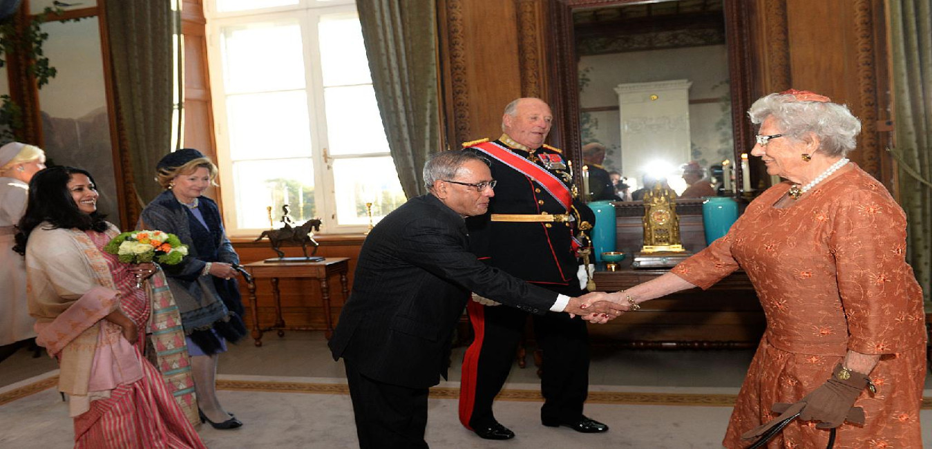 The President of India, Shri Pranab Mukherjee having Photo Opportunity with the Royal Family at Royal Palace at Oslo in Norway on Oct 13, 2014