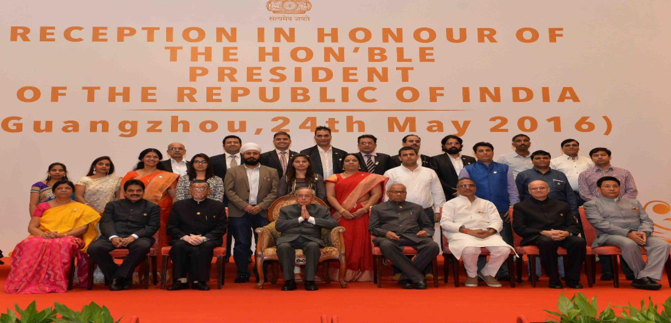 The President of India, Shri Pranab Mukherjee attending the Indian Community Reception, at Hotel Shangri-La, in Guangzhou, The People s Republic of China on May 24, 2016.