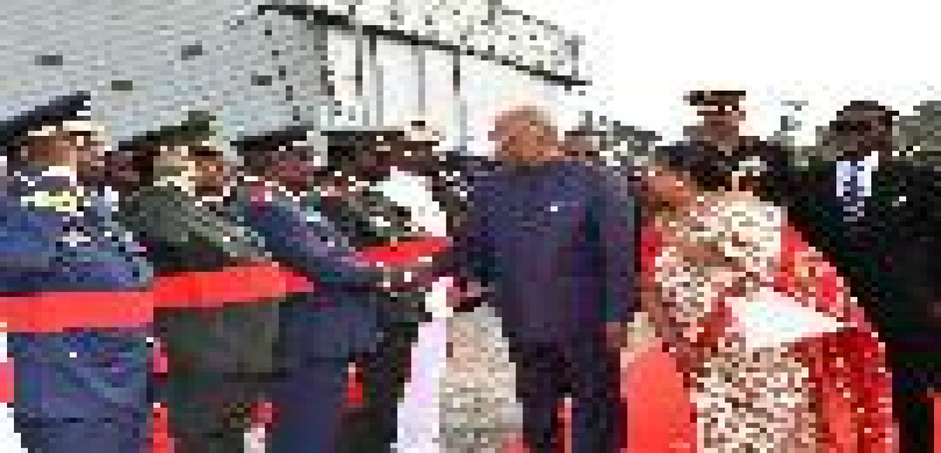 The President of India, Shri Ram Nath Kovind being received by the President of the Republic of Zambia, H.E. Mr. Edgar Chagwa Lungu and other dignitaries, on his arrival, at Kenneth Kaunda International Airport, Lusaka, in the Republic of Zambia on April 10, 2018.