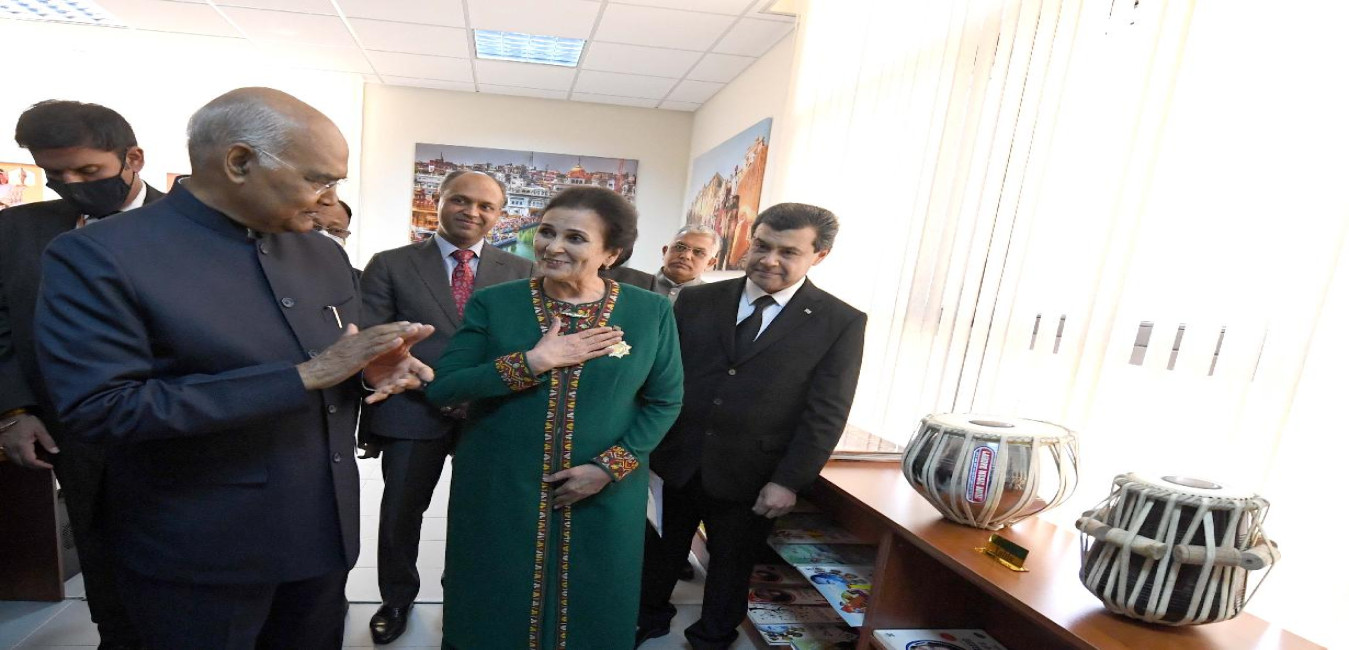 The President of India, Shri Ram Nath Kovind addressed the Institute of International Relations and inaugurated the India corner, in Ashgabat, Turkmenistan on April 03, 2022. On this occasion, a commemorative postage stamp was released celebrating 30 years of the establishment of diplomatic relations between India and Turkmenistan.