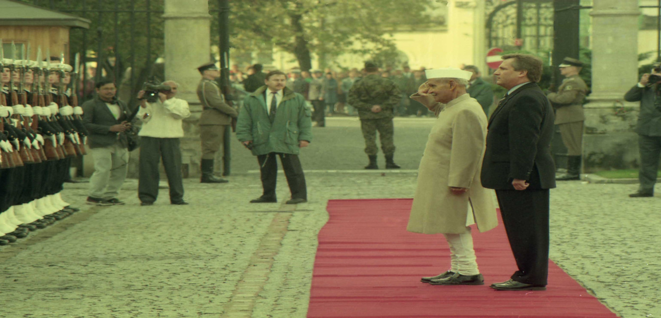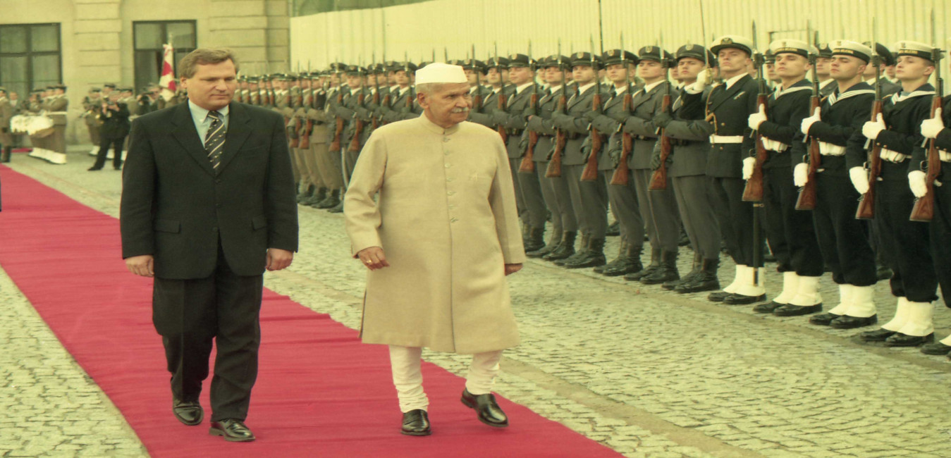 The President of India, Dr. Shankar Dayal Sharma with the Polish President, Mr. Aleksander Kwa?niewski during Farewell ceremony, at Presidential Palace, in Warsaw, Poland on October 09, 1996.