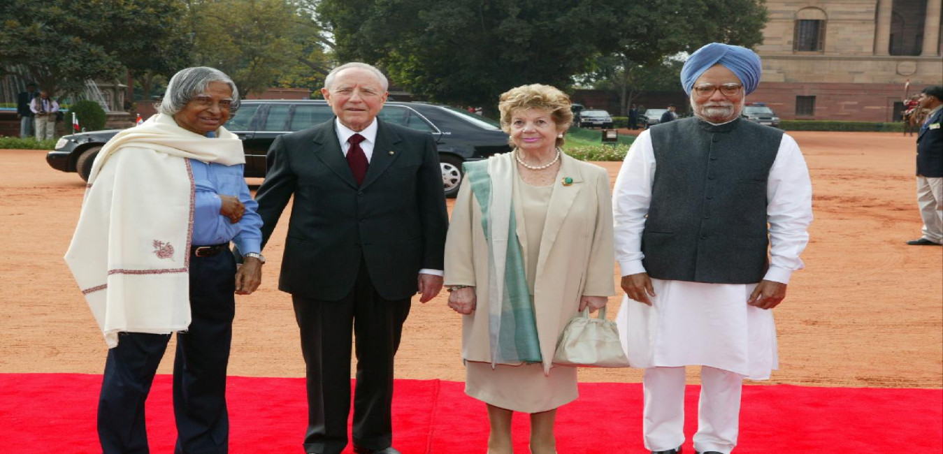 The President of Italy, HE Mr Carlo Azeglio Ciampi and his wife Mrs Franca Ciampi calling on the President of India, Dr A P J Abdul Kalam at the North Drawing Room of Rashtrapati Bhavan in New Delhi on Feb 14, 2005