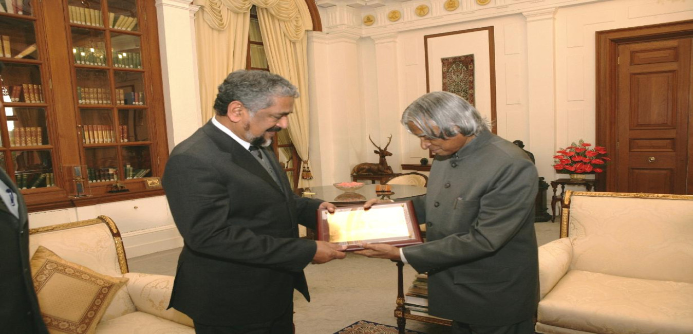The President of India, Dr A P J Abdul Kalam interacting with the Former President of Republic of Mauritius, HE Mr Cassam Uteem at the Morning Room of Rashtrapati Bhavan in New Delhi on Dec 13, 2006