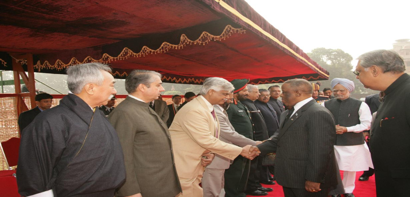 The President of Botswana, His Excellency Festus Mogae and Her Excellency Mrs Barbara Mogae calling on the President of India, Dr A P J Abdul Kalam at the North Drawing Room of Rashtrapati Bhavan in New Delhi on Dec 08, 2006