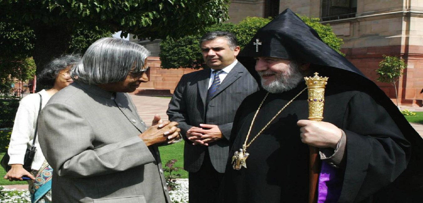 The Supreme Patriarch and Catholicos of All Armenians HH Karekin-II calling on the President of India, Dr A P J Abdul Kalam at the Morning Room of Rashtrapati Bhavan in New Delhi on March 04, 2007