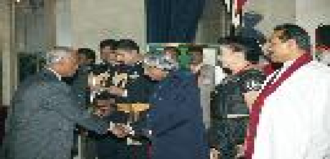 The President of India, Dr A P J Abdul Kalam at the Ceremonial Reception of the President of the Democratic Socialist Republic of Sri Lanka, HE Mr Mahinda Rajapaksa and his wife Mrs Rajapaksa at the Forecourt of Rashtrapati Bhavan in New Delhi on Dec 28, 2005