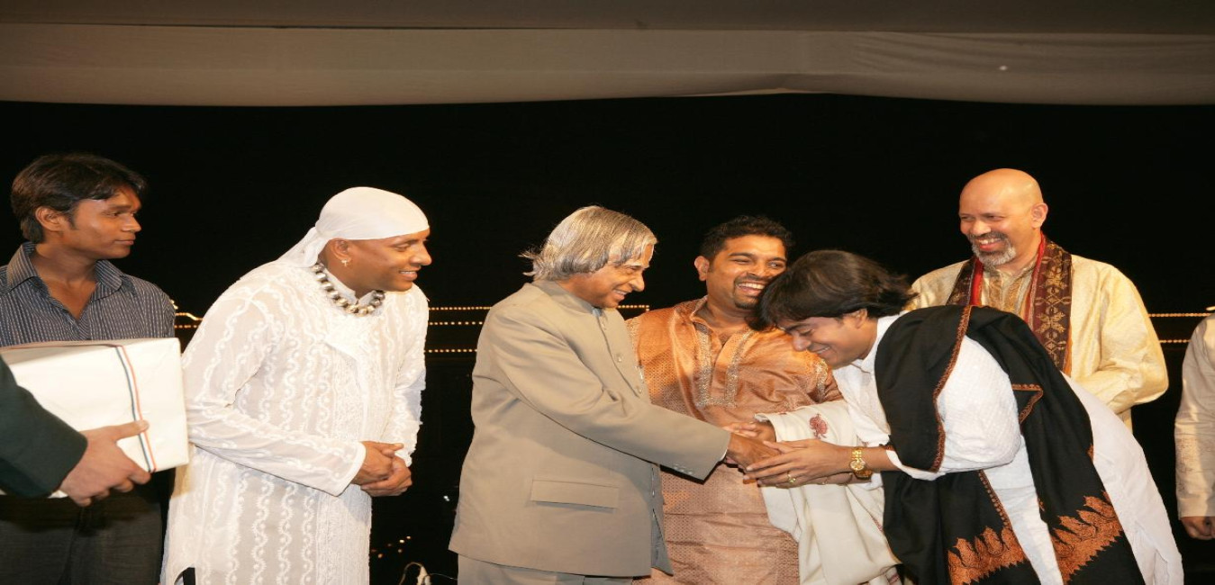 The President of India, Dr A P J Abdul Kalam at a Musical Extravaganza by the Artistes of Shradha (U Srinivas (Mandolin), Shankar Mahadevan (Vocal), Loy (Keyboard) and Shivamani (Drums) at the Central Lawn of Rashtrapati Bhavan in New Delhi on Nov 13, 2006