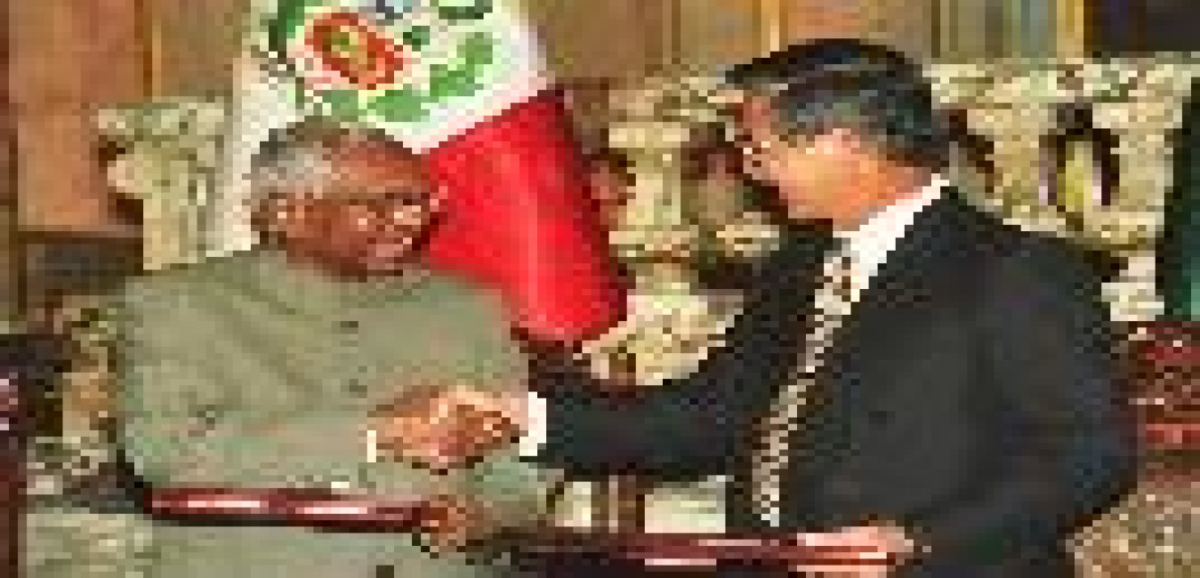 The President of India, Shri K R Narayanan with the Peruvian President, HE Mr Alberto Fujimori during their meeting and Signing of Agreements at Lima in Peru on April 30, 1998
