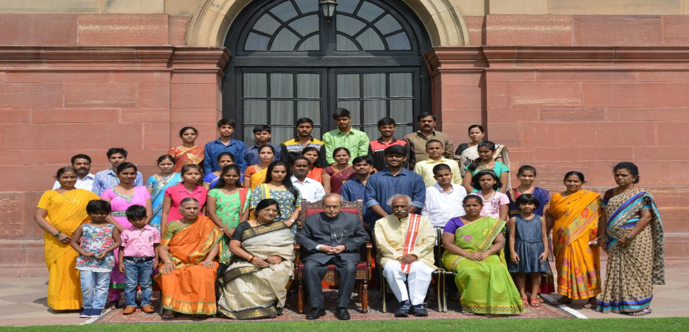 The President of India, Shri Pranab Mukherjee meeting with Shri Bandaru Dattatreya, Minister of State (Independent Charge) for Labour & Employment alongwith his family members & guests, at Rashtrapati Bhavan on May 05, 2016.