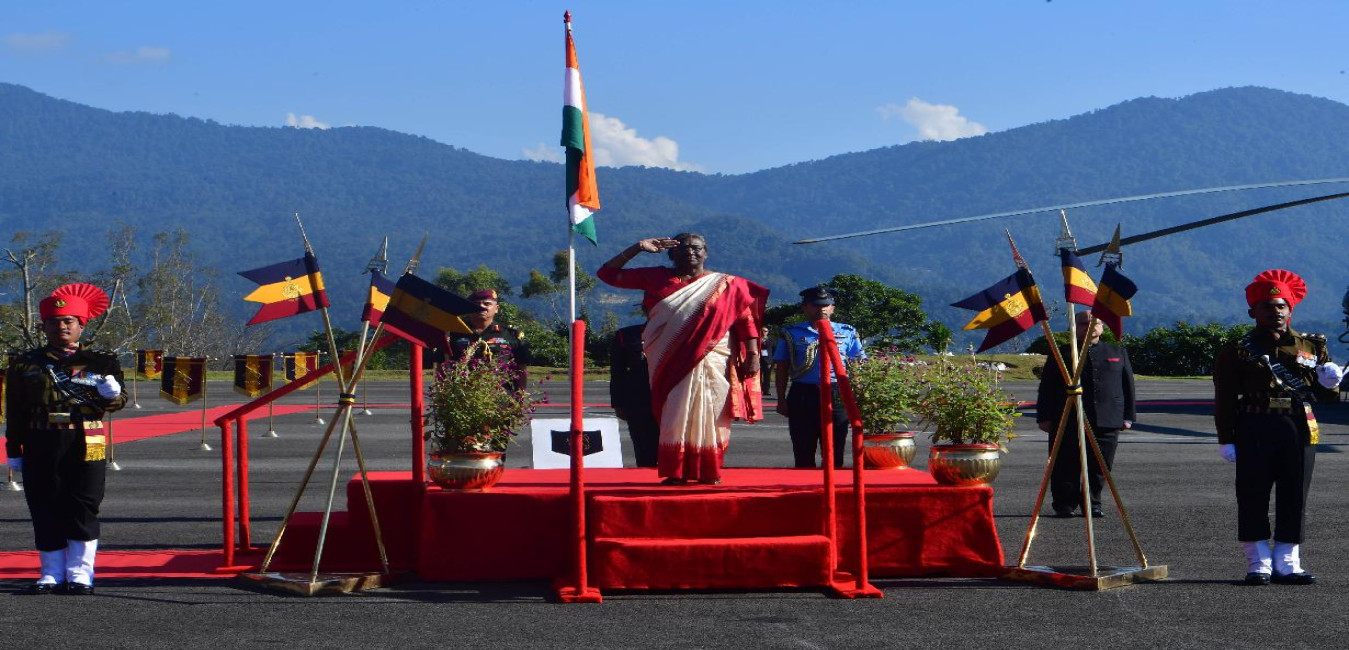 The President of India, Smt. Droupadi Murmu being received by the Governor of Sikkim, Shri Ganga Prasad and the Chief Minister, Shri Prem Singh Tamang, on her arrival, at Gangtok on November 04, 2022. The President was accorded a guard of honour on her first visit to Sikkim.