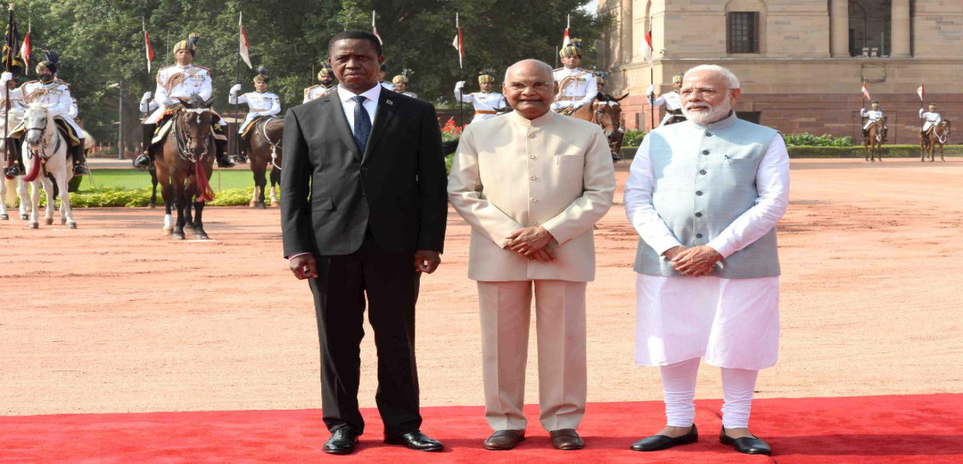 The President of India, Shri Ram Nath Kovind accords a Ceremonial Welcome to the President of the Republic of Zambia, H.E. Mr. Edgar Chagwa Lungu, at Rashtrapati Bhavan on August 21, 2019.