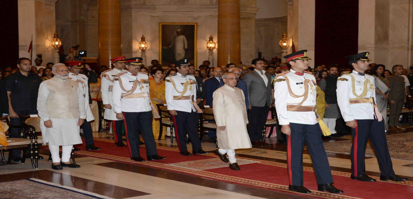 The President of India, Shri Pranab Mukherjee during the presentation of Gallantry Awards and Distinguished Service Decorations, at a Defence Investiture Ceremony, at Rashtrapati Bhavan on April 06, 2017.