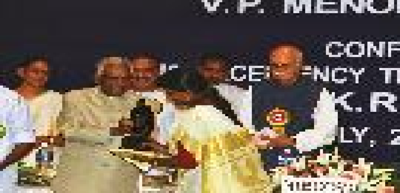 The President of India, Shri K R Narayanan presenting the First VP Menon Awards Instituted by the Chettur Sankaran Nair Foundation, Ottapalam at Chinmaya Auditorium in New Delhi on July 10, 2002