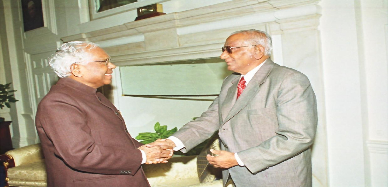 The Vice President of the Republic of Mauritius, HE Mr A V Chettiar calling on the President of India, Shri K R Narayanan at the Study of Rashtrapati Bhavan in New Delhi on Jan 05, 1999