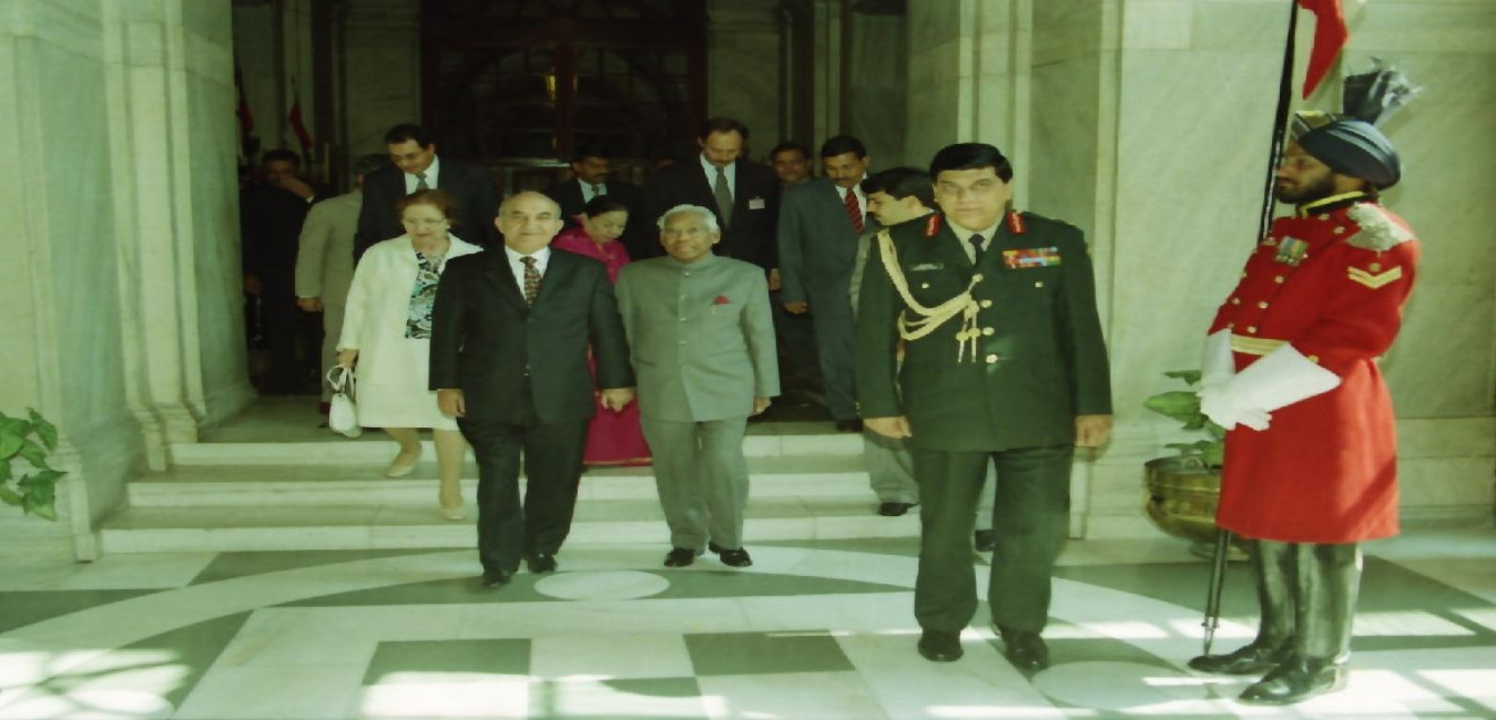The President of India, Shri K R Narayanan at the Lunch Hosted in Honour of the Distinguished Guests of the Prime Minister of the Kingdom of Morocco, HE Mr Abderrahmane Youssoufi and his wife Helene Youssoufi at the Banquet Hall of Rashtrapati Bhavan in New Delhi on Feb 22, 2000