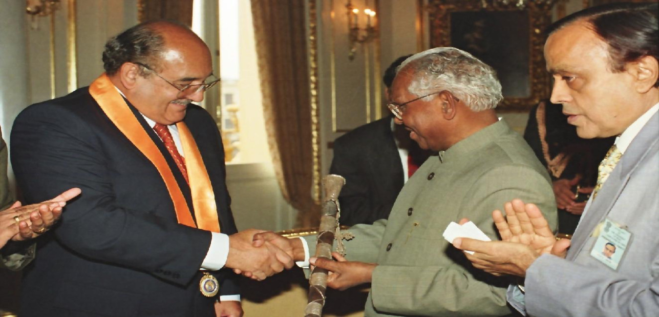 The President of India, Shri K R Narayanan with the Mayor of Lima, HE Mr Alberto Andrade during the Presentation of Key of the City of Lima in Peru on April 30, 1998