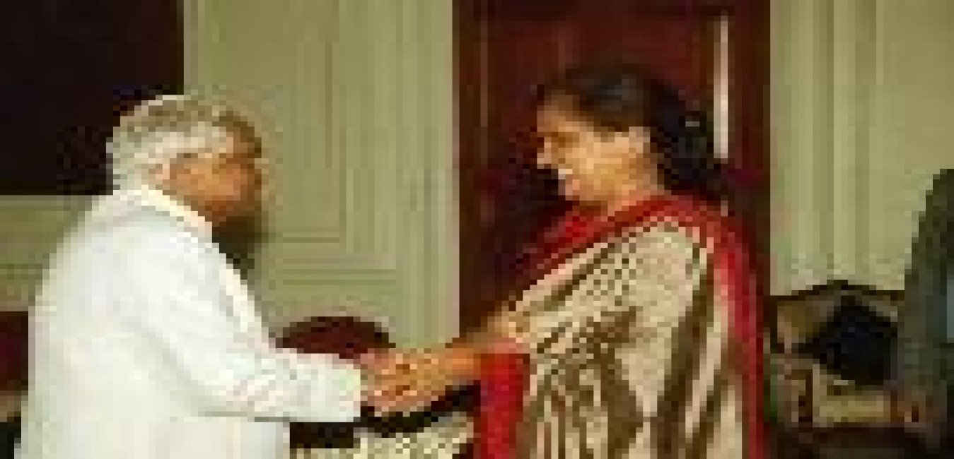 The President of the Democratic Socialist Republic of Sri Lanka, Her Excellency Mrs Chandrika B Kumaratunga calling on the President of India, K R Narayanan at the Morning Room of Rashtrapati Bhavan in New Delhi on April 24, 2002