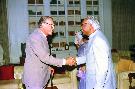 The High Commissioner of United Kingdom Countess Mountbatten, HE Mr David Gore Booth alongwith Lord Brabourne calling on the President of India, Shri K R Narayanan of Rashtrapati Bhavan in New Delhi on Aug 02, 1997