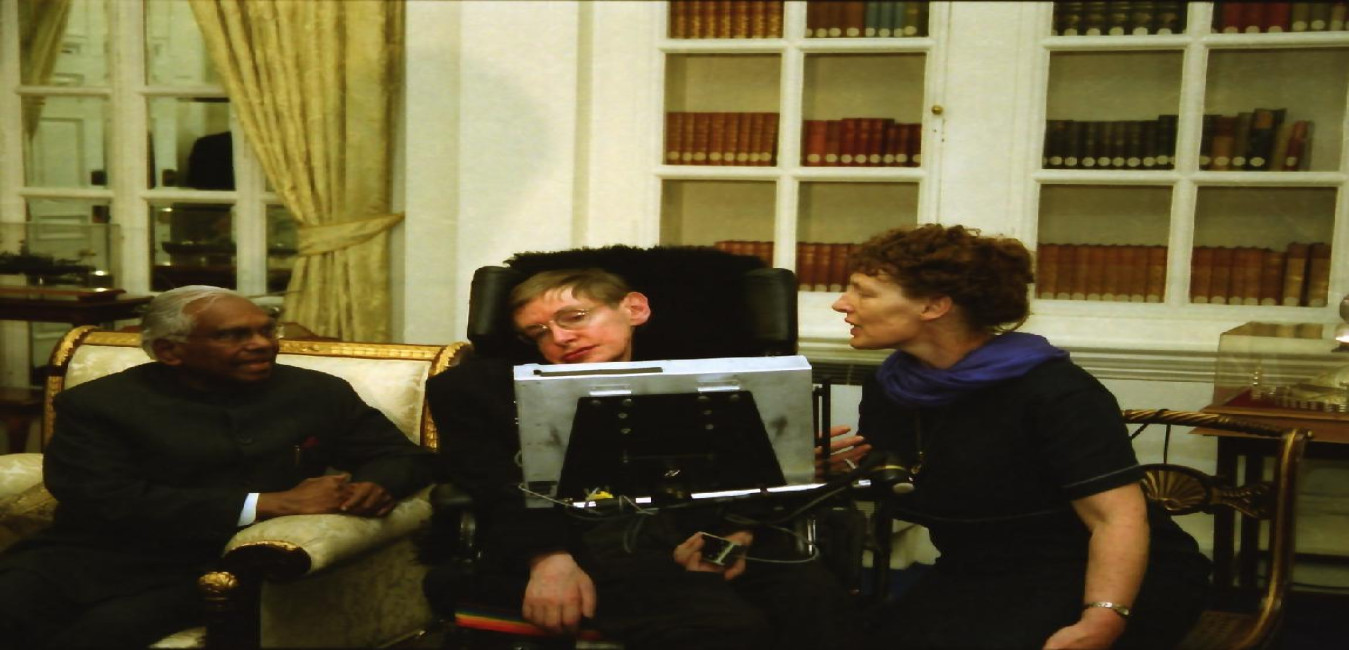 The President of India, Shri K R Narayanan interacting with the Prof Stephen Hawking, Mrs Elaine Hawking, Prof Ranjit Nair Director, Centre for Philosophy and Foundations of Science, Dr Daksh Lohia and one Nurse at Rashtrapati Bhavan in New Delhi on Jan 15, 2001
