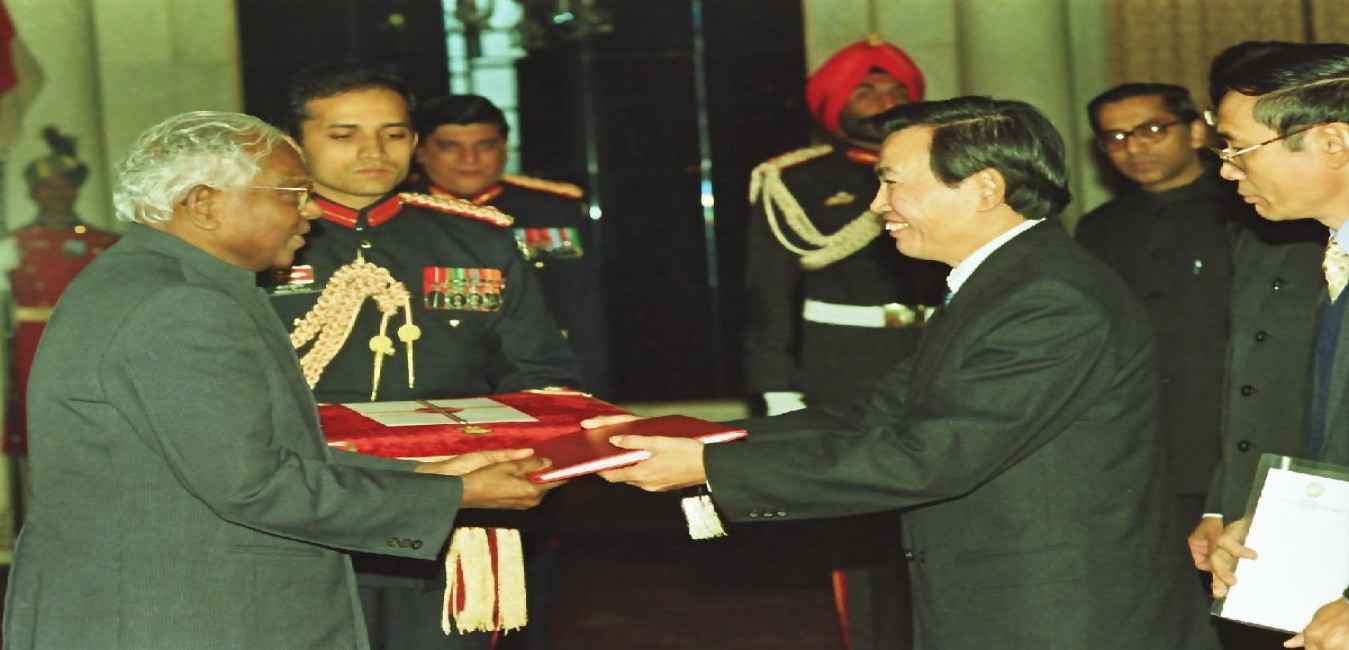 The Ambassador-Designate of the Socialist Republic of Vietnam, HE Mr Pham Sy Tam presenting his credentials to the President of India, Shri K R Narayanan at Rashtrapati Bhavan in New Delhi on Jan 19, 1998