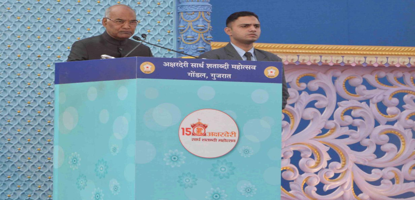 The President of India, Shri Ram Nath Kovind gracing the 150th Anniversary Celebrations of Akshar Deri, at Gondal, in Gujarat on January 22, 2018.