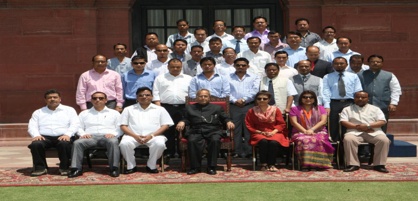 The President of India, Shri Pranab Mukherjee Meeting with A.T. Mondal Speaker Meghalaya Legislative Assembly along with a delegation of Ministers & MLAs from Meghalaya on 01 May 2013