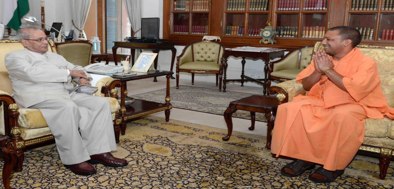 The Chief Minister of Uttar Pradesh, Yogi Adityanath calling on the President of India, Shri Pranab Mukherjee, at Rashtrapati Bhavan on March 21, 2017.