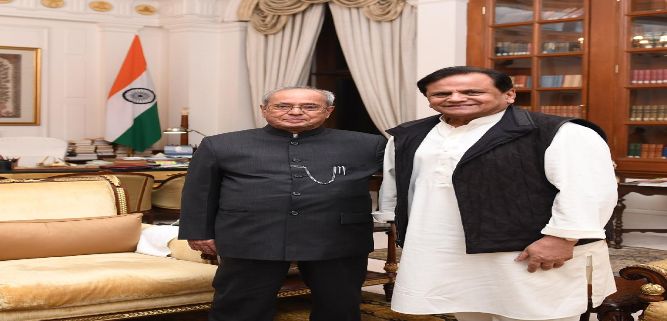 The Member of Parliament, Rajya Sabha, Shri Ahmed Patel greeting the President of India, Shri Pranab Mukherjee on the occasion of his birthday, at Rashtrapati Bhavan on December 11, 2016.