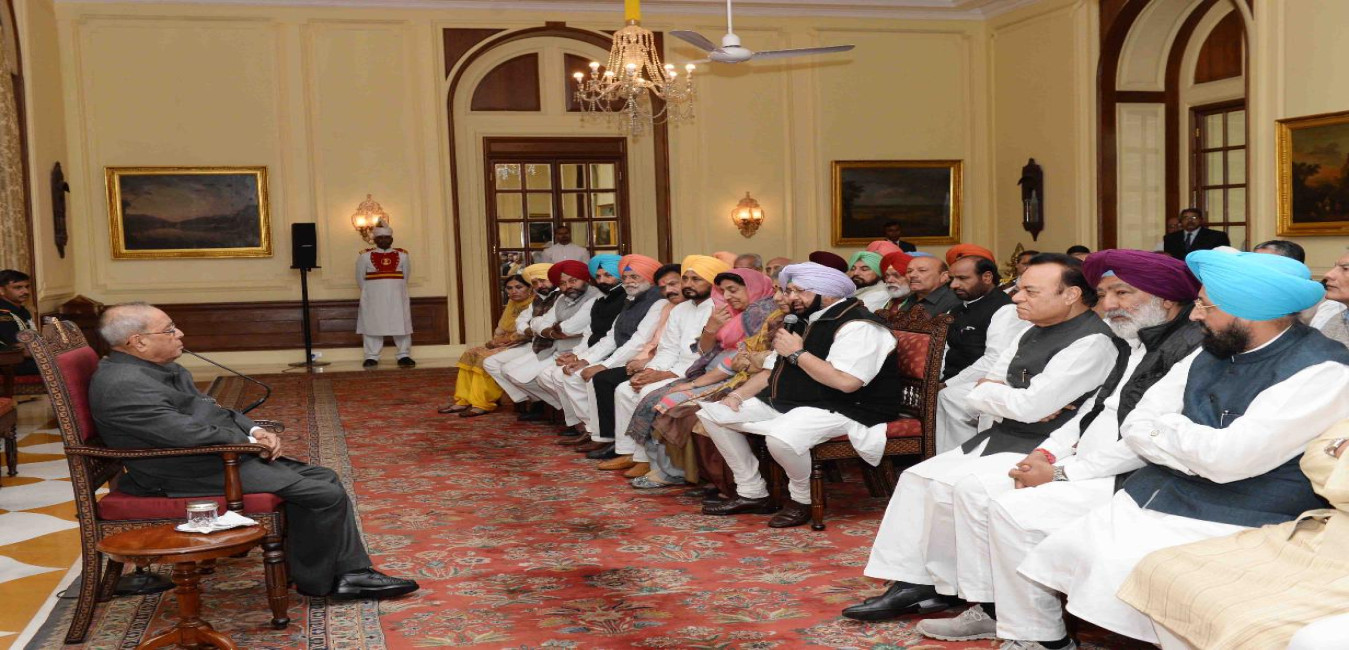 The President of India, Shri Pranab Mukherjee meeting with a delegation of Congress MPs & MLAs from Punjab led by Capt. Amrinder Singh, President, Pradesh Congress Committee, at Rashtrapati Bhavan on November 17, 2016.