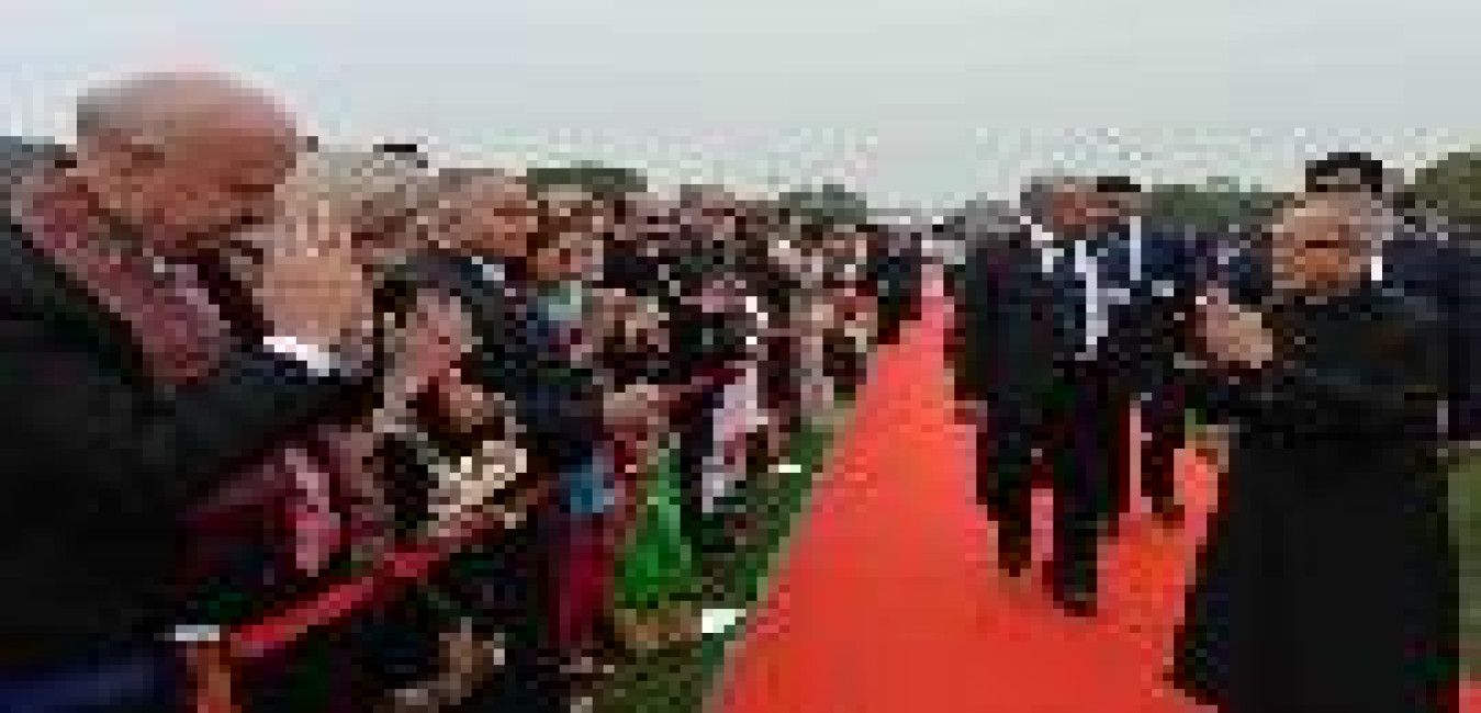 The President of India, Shri Pranab Mukherjee receiving the President of the United States of America, HE Mr Barack Obama during his Ceremonial Reception at the forecourt of Rashtrapati Bhavan, in New Delhi on January 25, 2015.