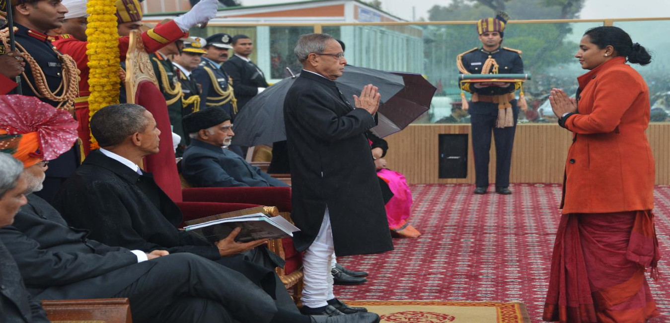 The President of India, Shri Pranab Mukherjee, witnessing the 66th Republic Day Parade at Rajpath, in New Delhi on January 26, 2015.