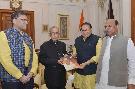 The President of India, Shri Pranab Mukherjee meeting with Shri D.P. Tripathi, MP (RS) alongwith Shri Hemraj Shah, General Secretary, Nationalist Congress Party (NCP) and Shri Arvind Shah, at Rashtrapati Bhavan on April 13, 2016.