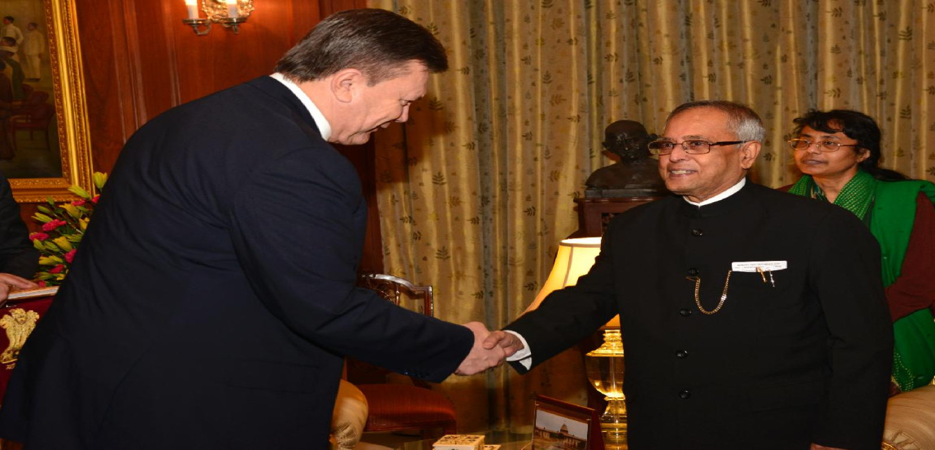The President of India, Shri Pranab Mukherjee receives HE Mr Viktor Yanukovych, President of Ukraine during his Ceremonial Reception at Rashtrapati Bhavan on december 12, 2012 The Prime Minister, Dr Manmohan Singh is also seen