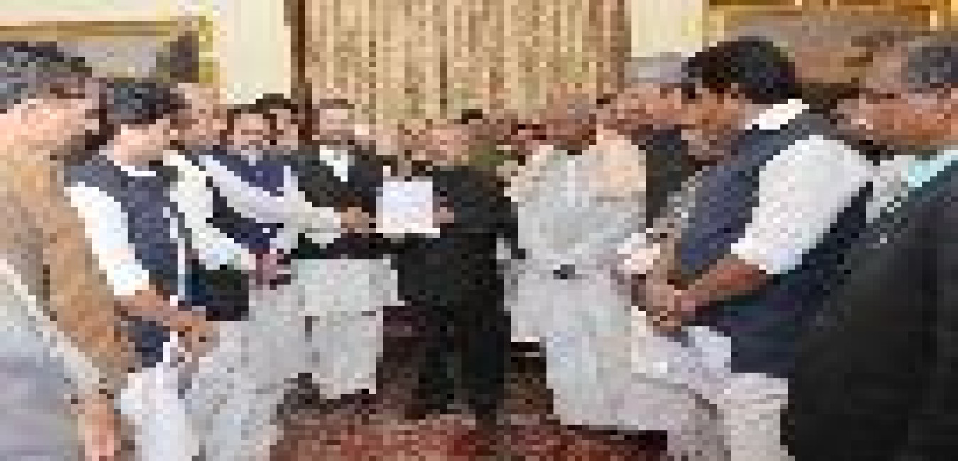 The President of India, Shri Pranab Mukherjee meeting with the delegation of Leaders of opposition parties led by Shri Ghulam Nabi Azad, Leader of Opposition, Rajya Sabha, at Rashtrapati Bhavan on April 12, 2017.