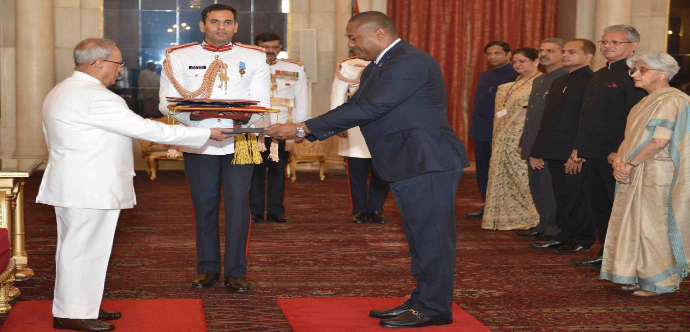 The Ambassador-designate of the Republic of Panama, HE Dr. Gilberto Llerena Garcia presenting his Credentials to the President of India, Shri Pranab Mukherjee, at Rashtrapati Bhavan, in New Delhi on November 13, 2015.